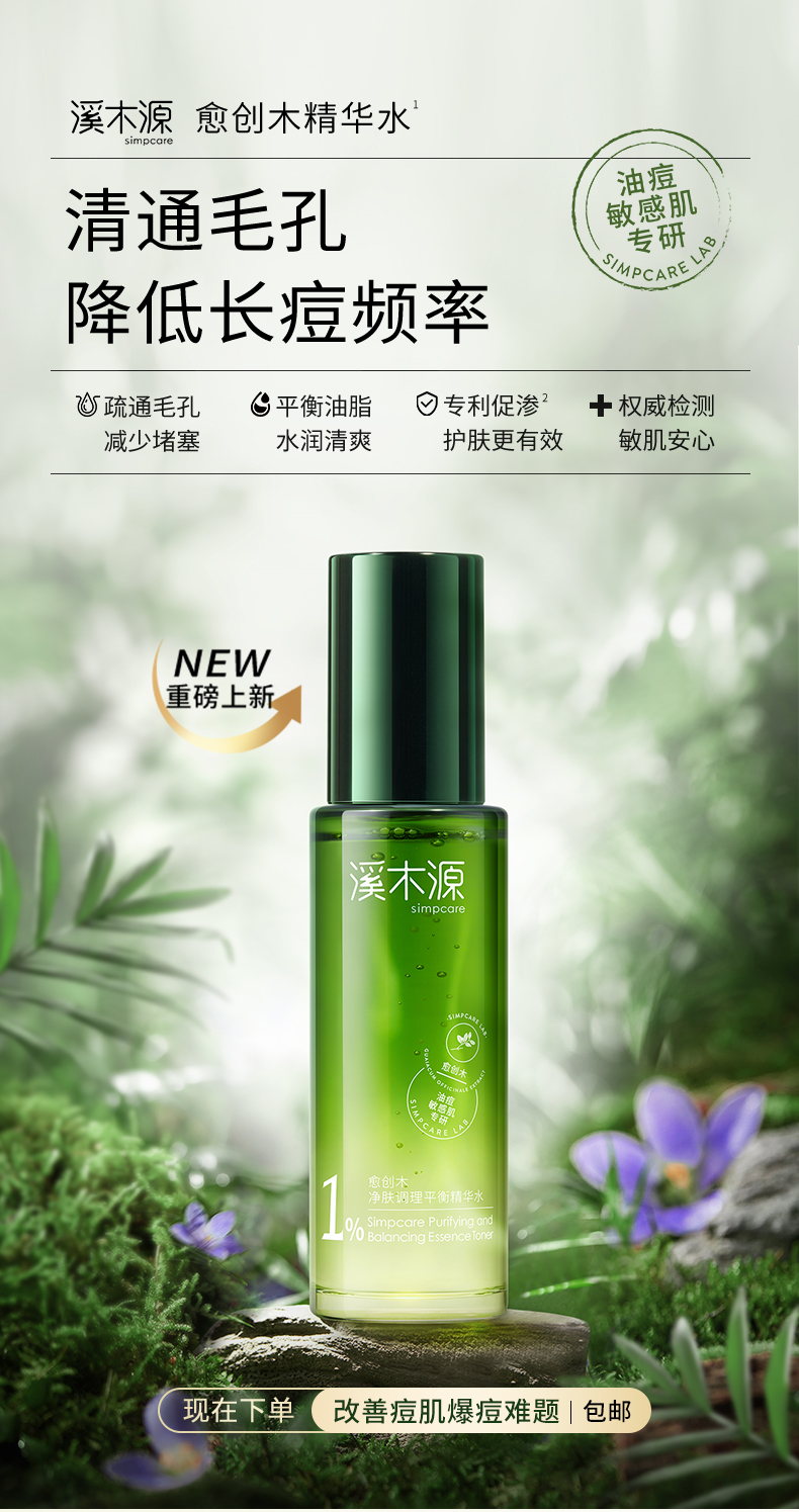 【痘敏肌祛痘必选】愈创木净肤调理平衡精华水