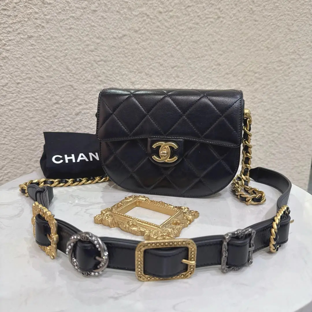 正品二手 Chanel 香奈儿 21A 手工坊 限量 徽章 牛皮 马鞍包 💼98新 18*13 芯片款 配件:防尘袋。巴洛克风格超有辨识度