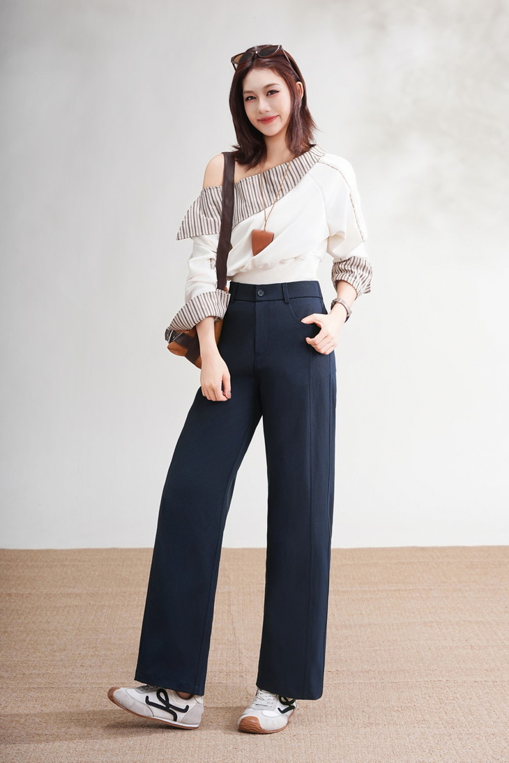 【小来】【FIVE WHITE GEESE 钛金樱花九分直筒裤】三色可选,90-150斤可穿,直筒版型,修饰包容,久坐不起皱