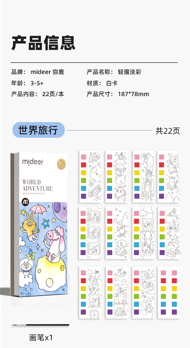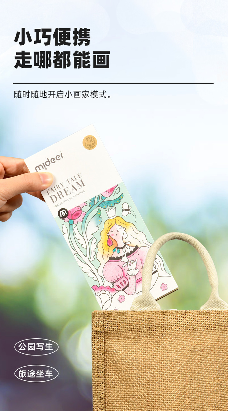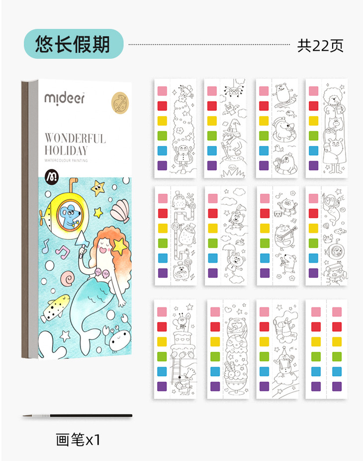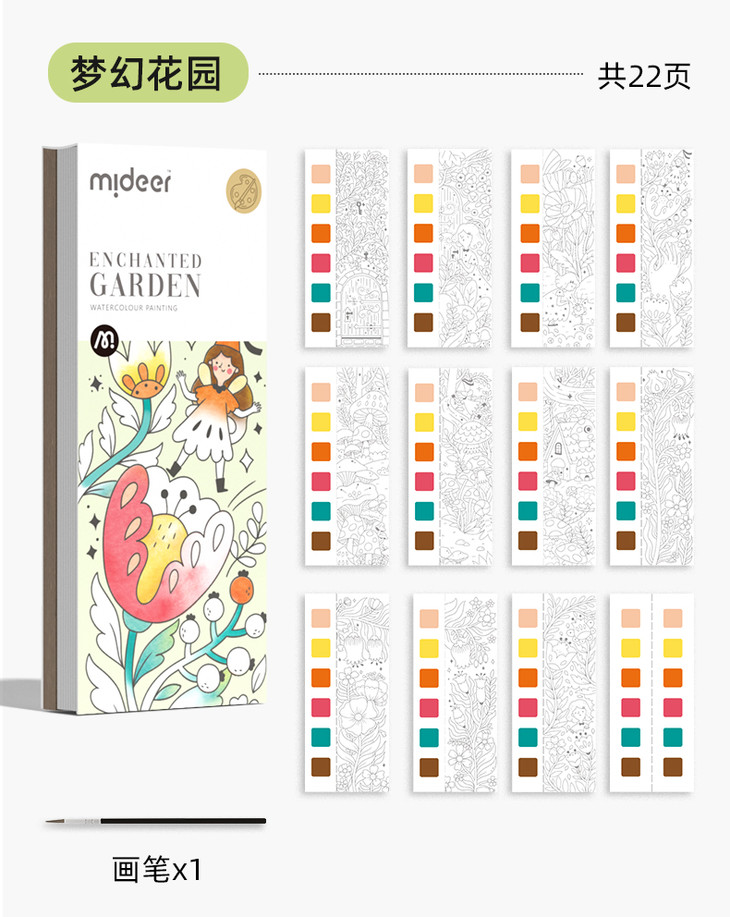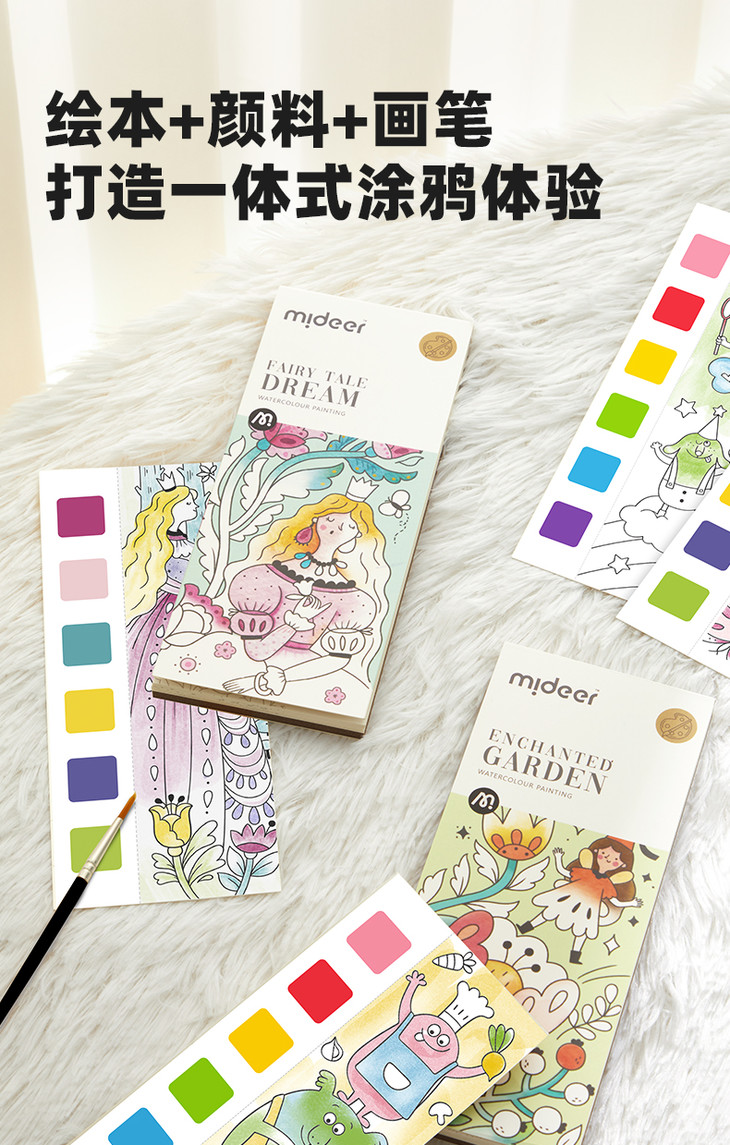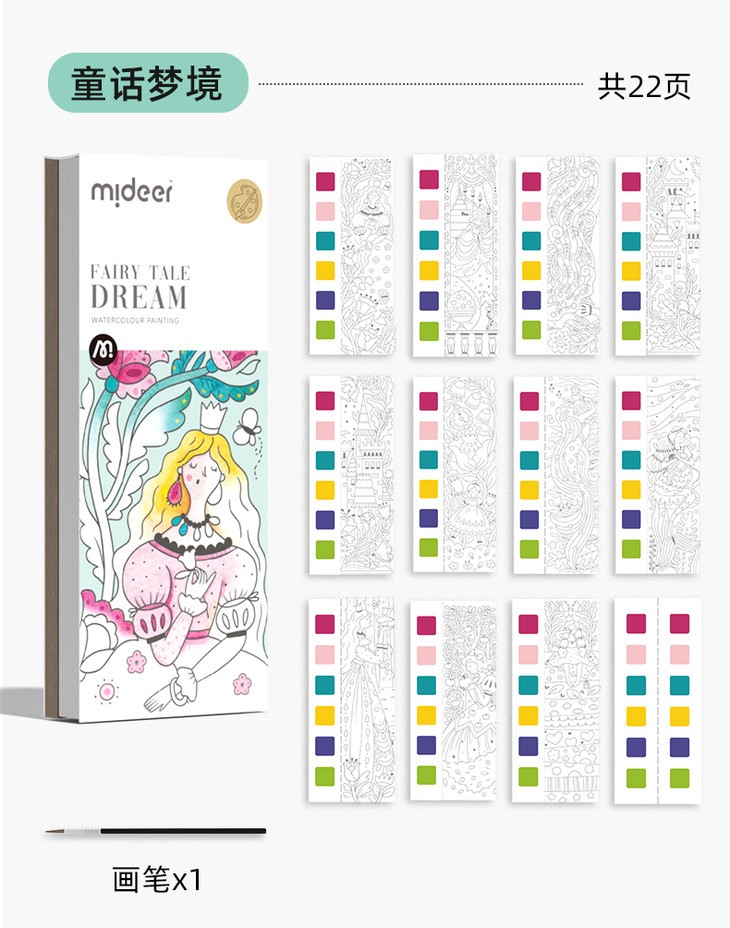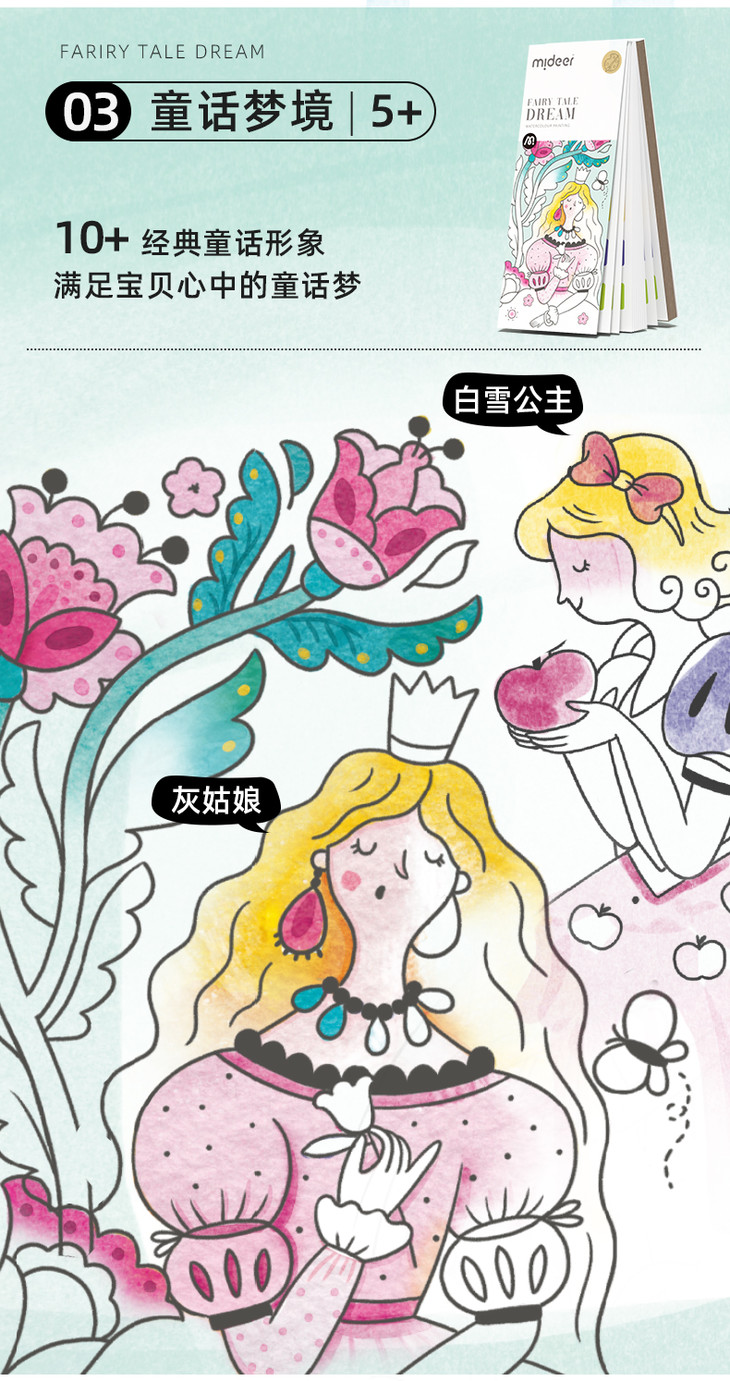 mideer弥鹿儿童水粉涂鸦绘本公主画画涂色本幼儿园宝宝便携填色画