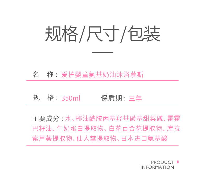 爱护婴童氨基酸奶油沐浴慕斯350ml