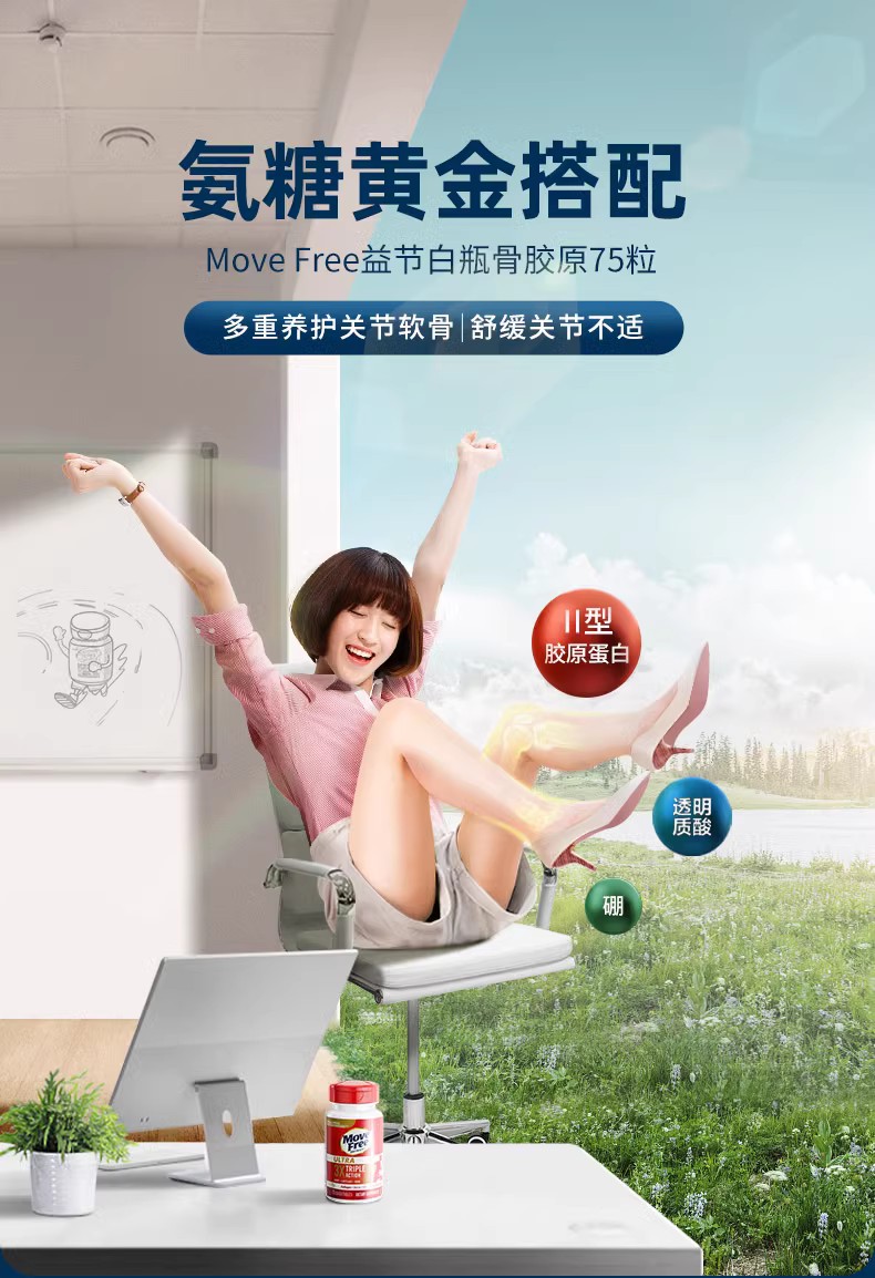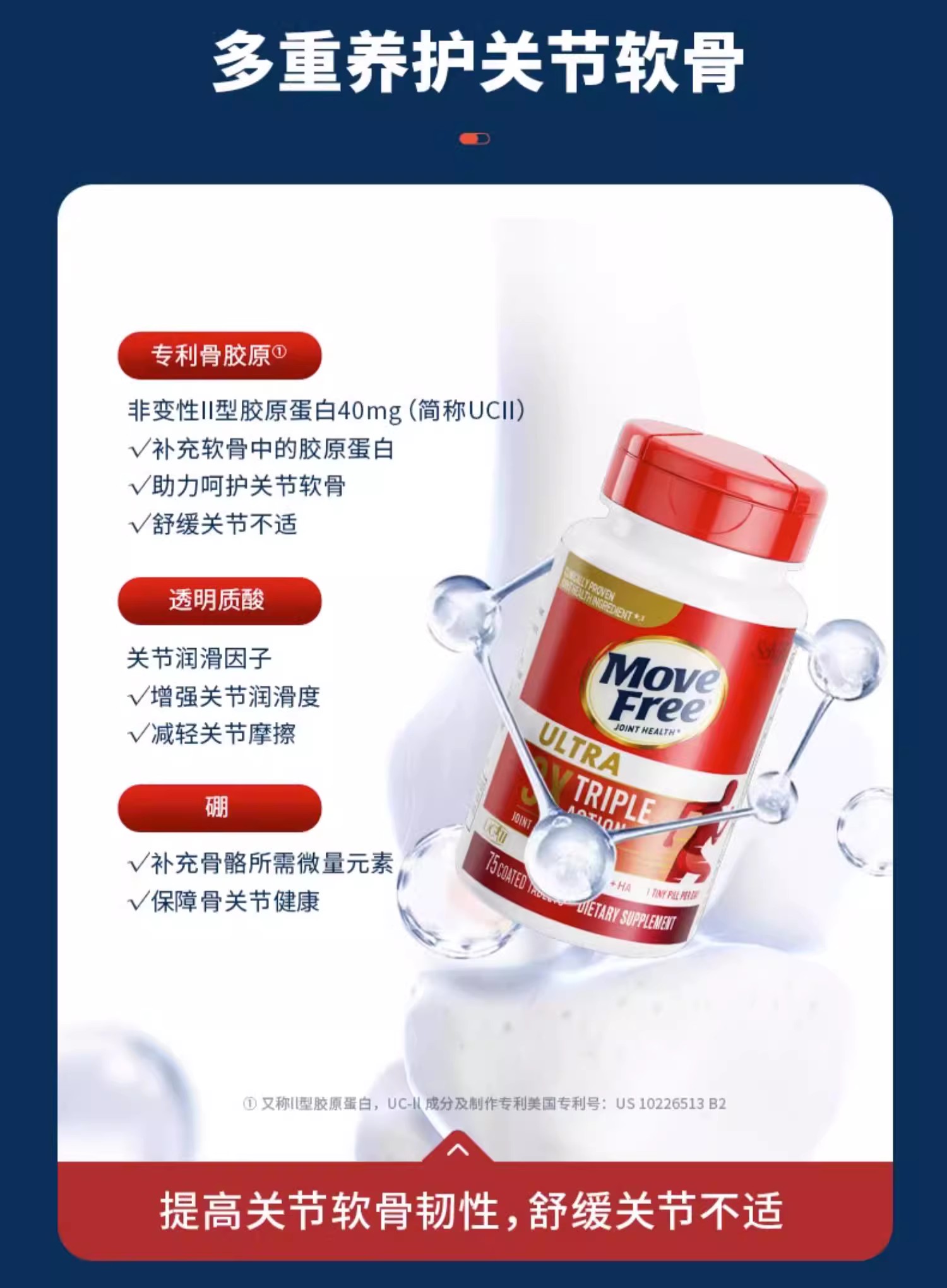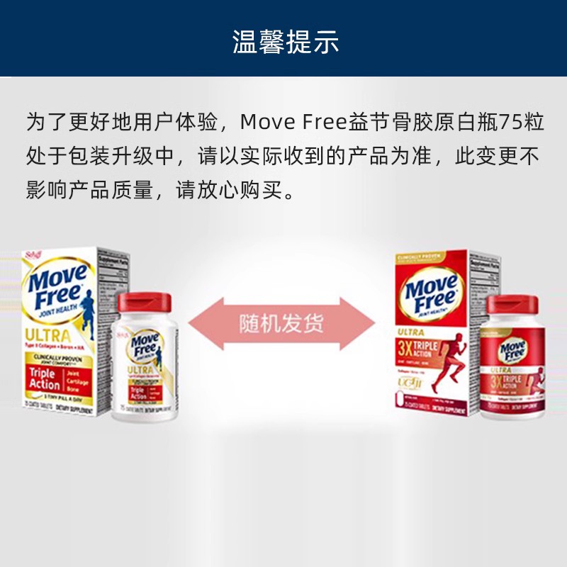 保税 美国原装进口 Schiff MoveFree Ultra益节骨胶原白瓶维骨力75粒片剂 氨糖搭档