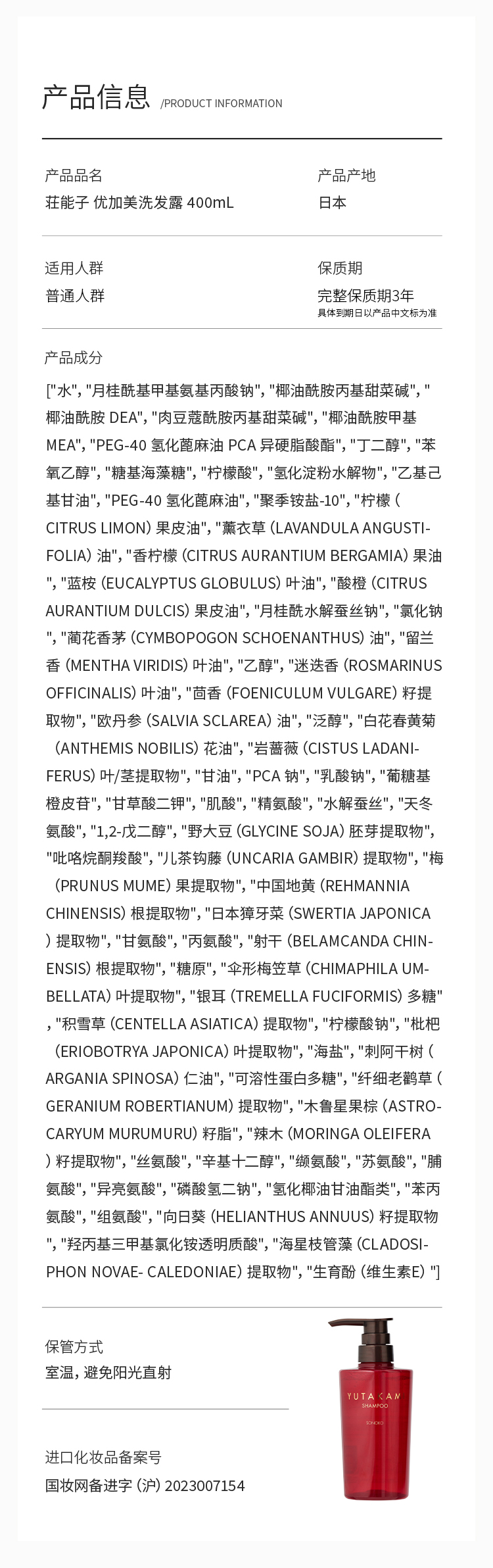 日本进口 SONOKO 荘能子 YUTAKAMI洗发水/护发素 400mL
