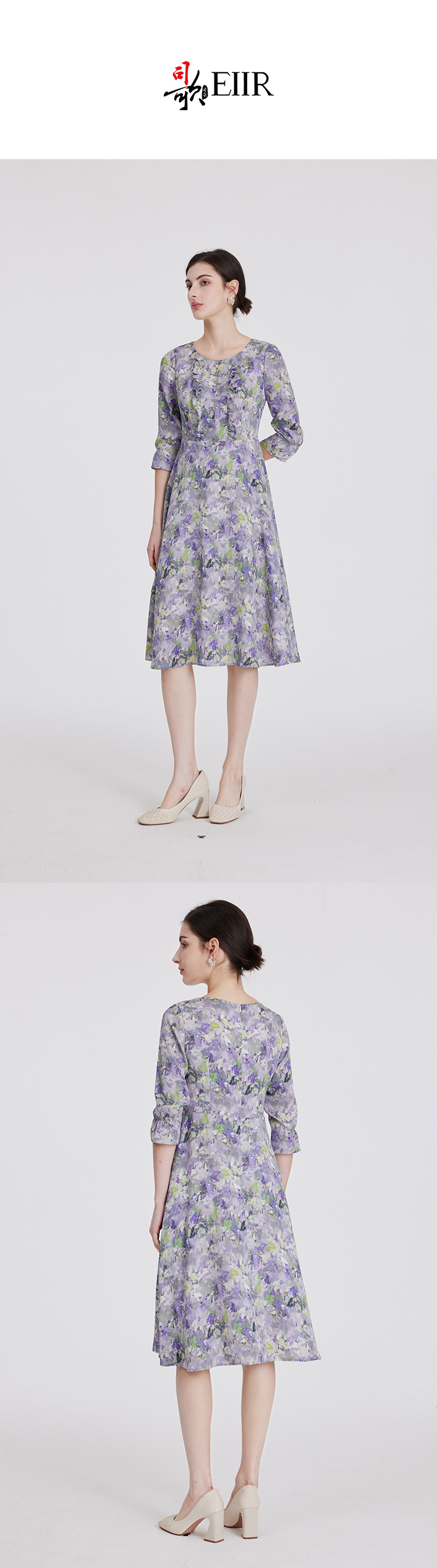 司歌翻领印花长袖连衣裙冬A881252