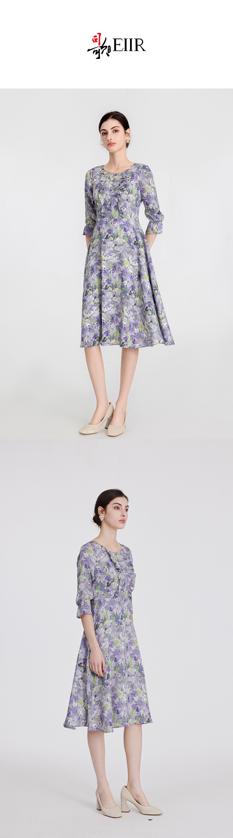 司歌弹力印花中袖连衣裙油画显瘦EA891244X