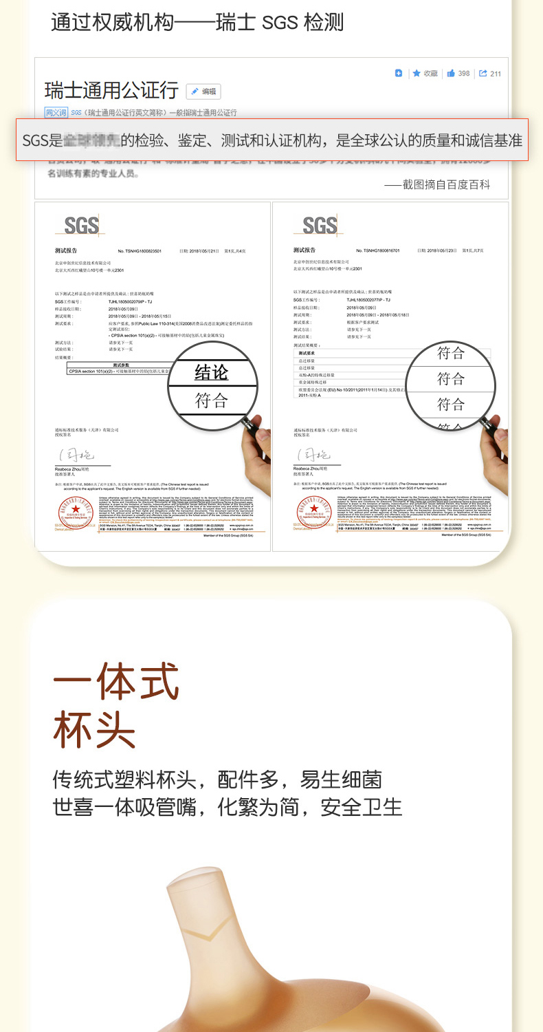 世喜学饮吸管奶水鸭嘴杯子婴幼儿童式喝奶瓶大宝宝防漏防呛小月龄