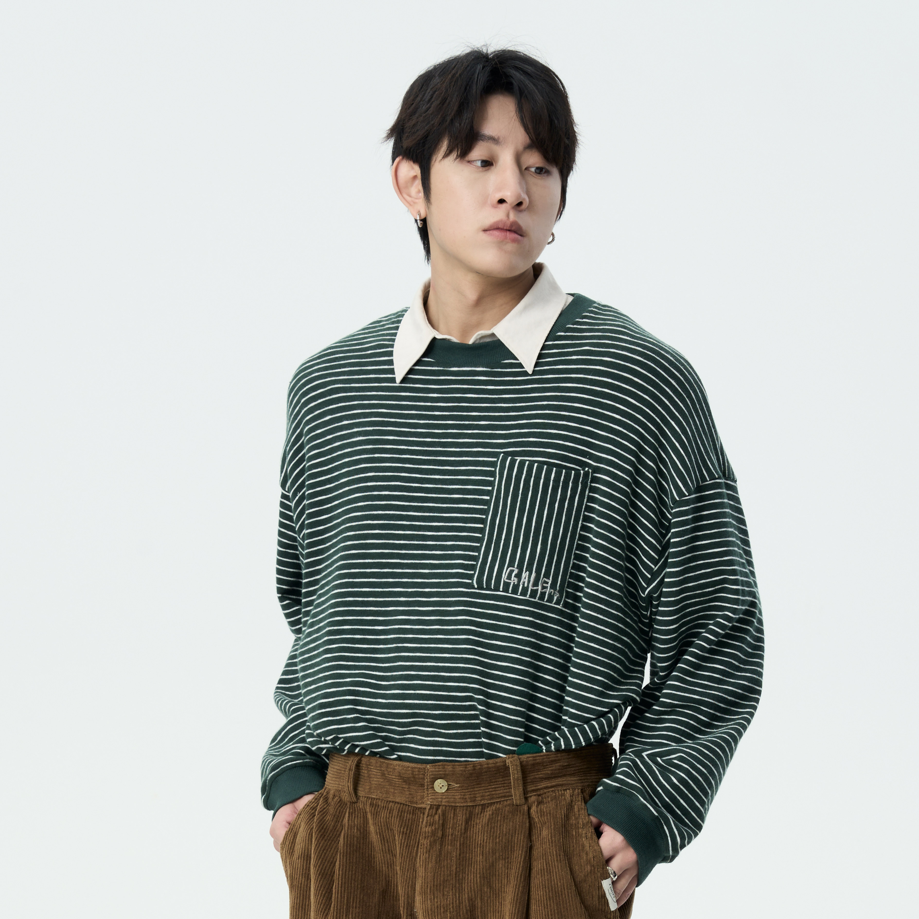 「Galent极蓝」CX222003/口袋刺绣条纹长袖