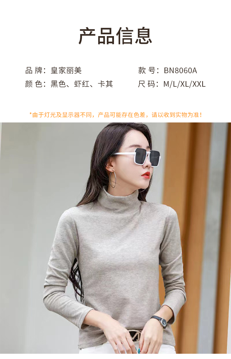 【秒杀品,不退不换】皇家丽美薄款有弹力修身显瘦柔软棉面料女士保暖上衣BN8060A