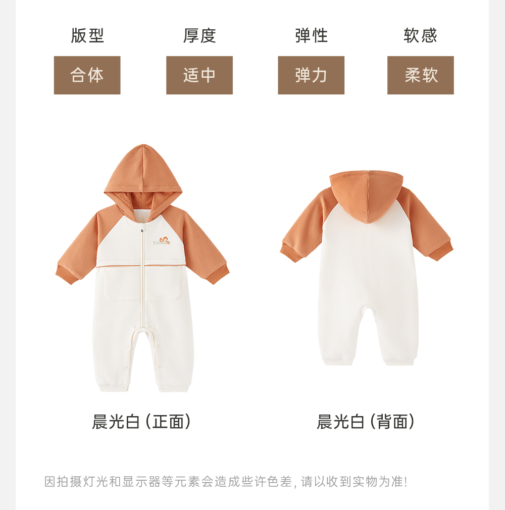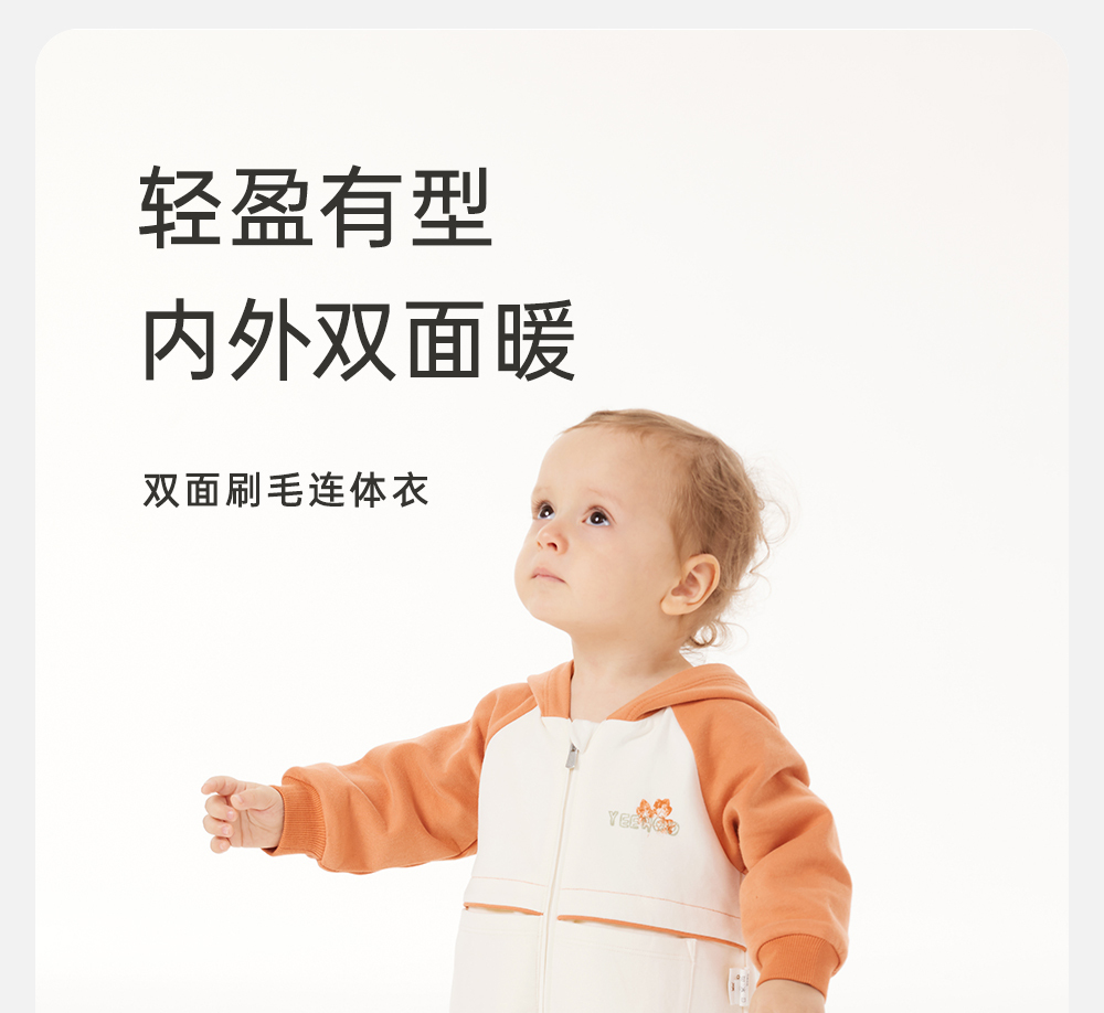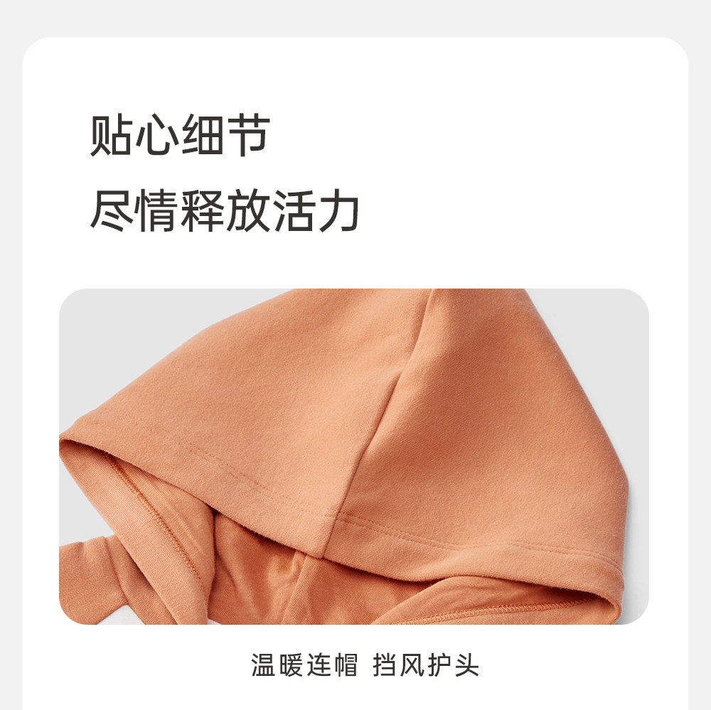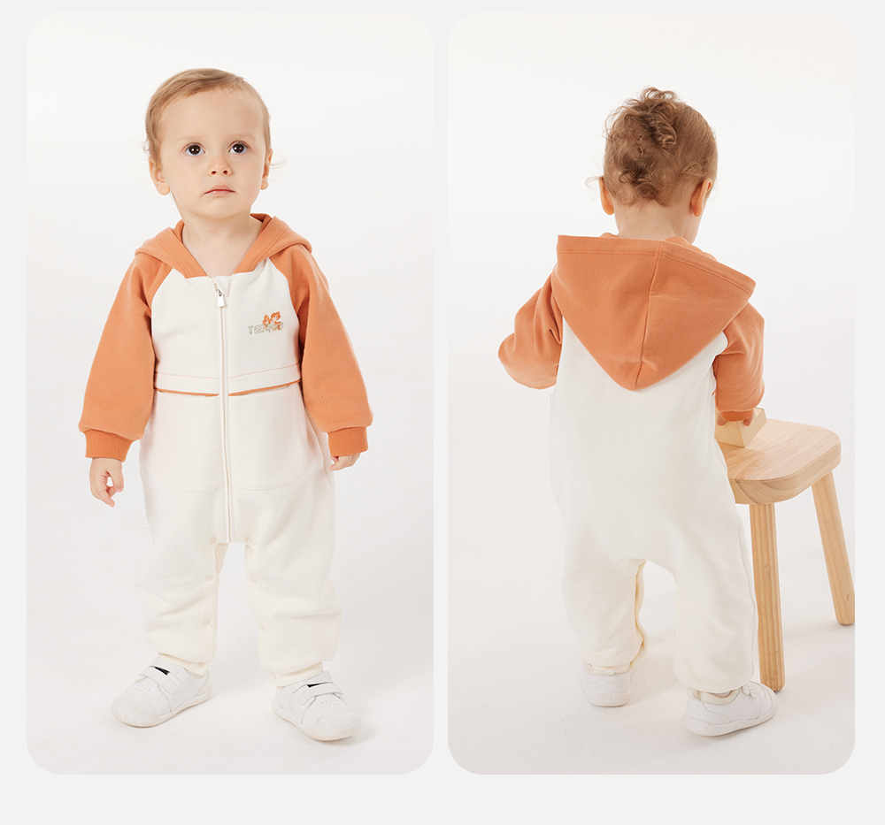英氏婴儿连体衣秋季长袖外出男童连帽连身衣2024新款YRHFJ3Q556A