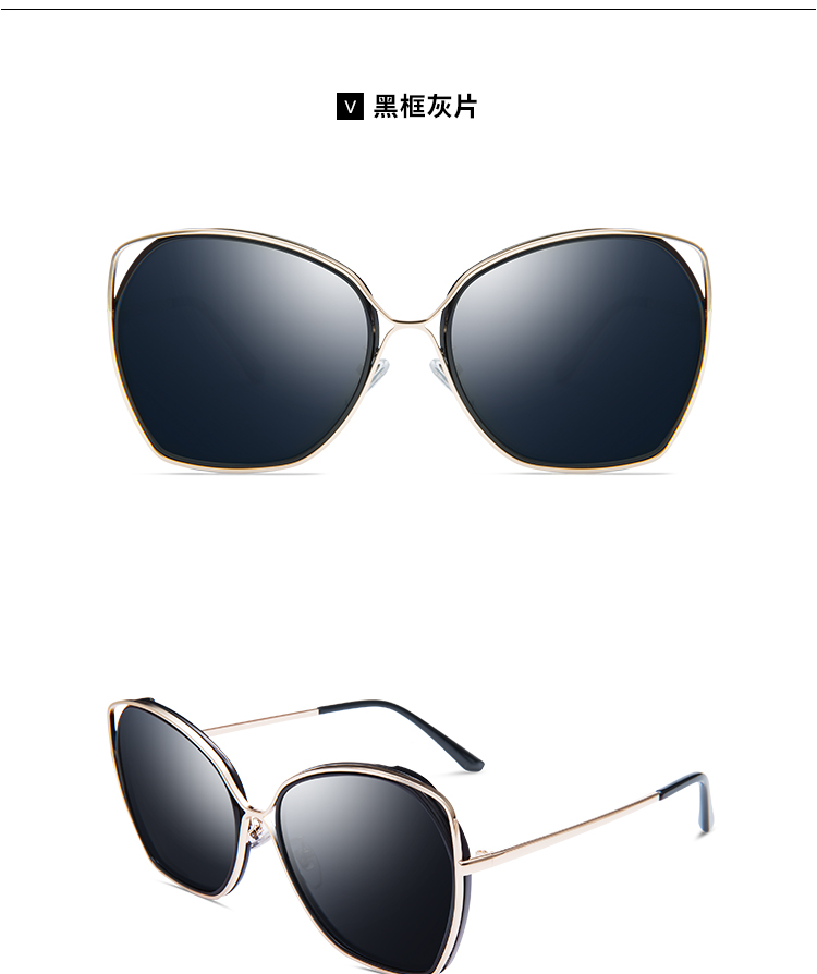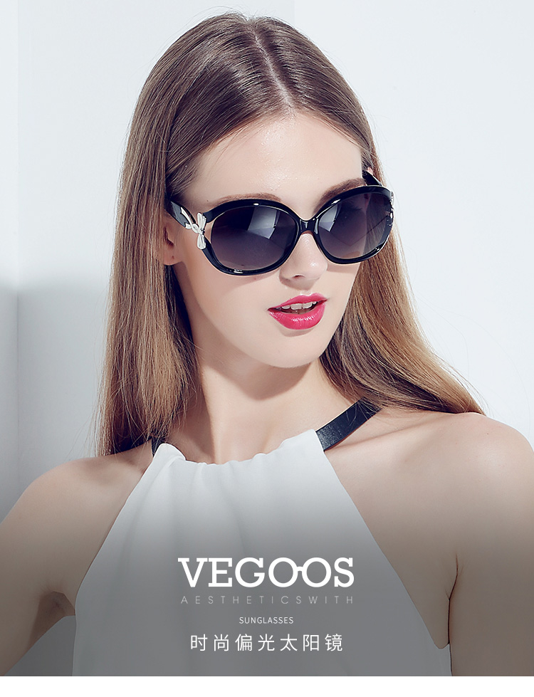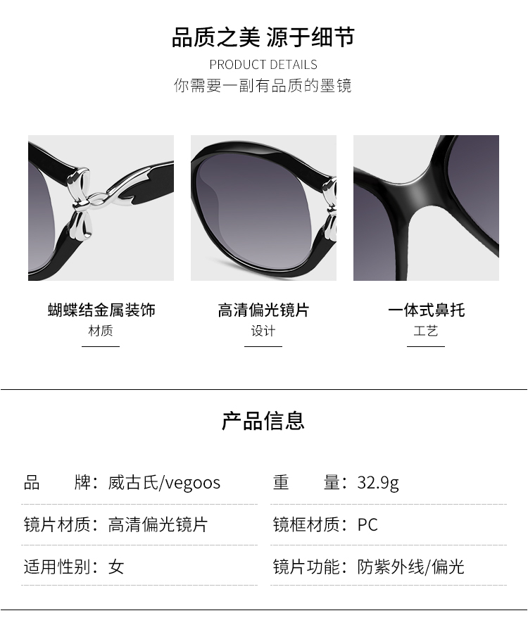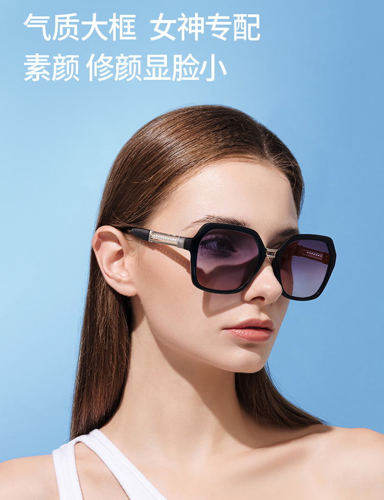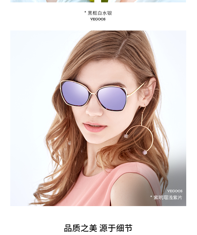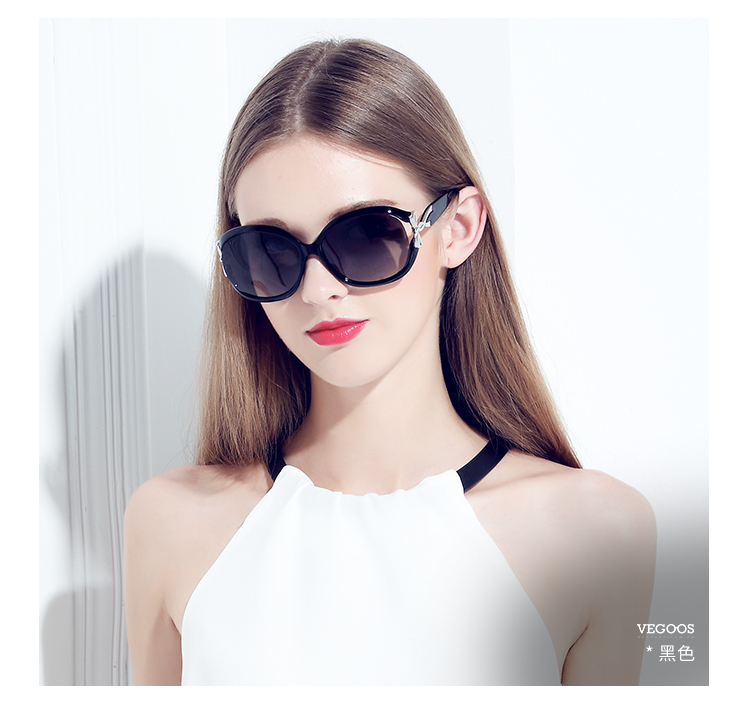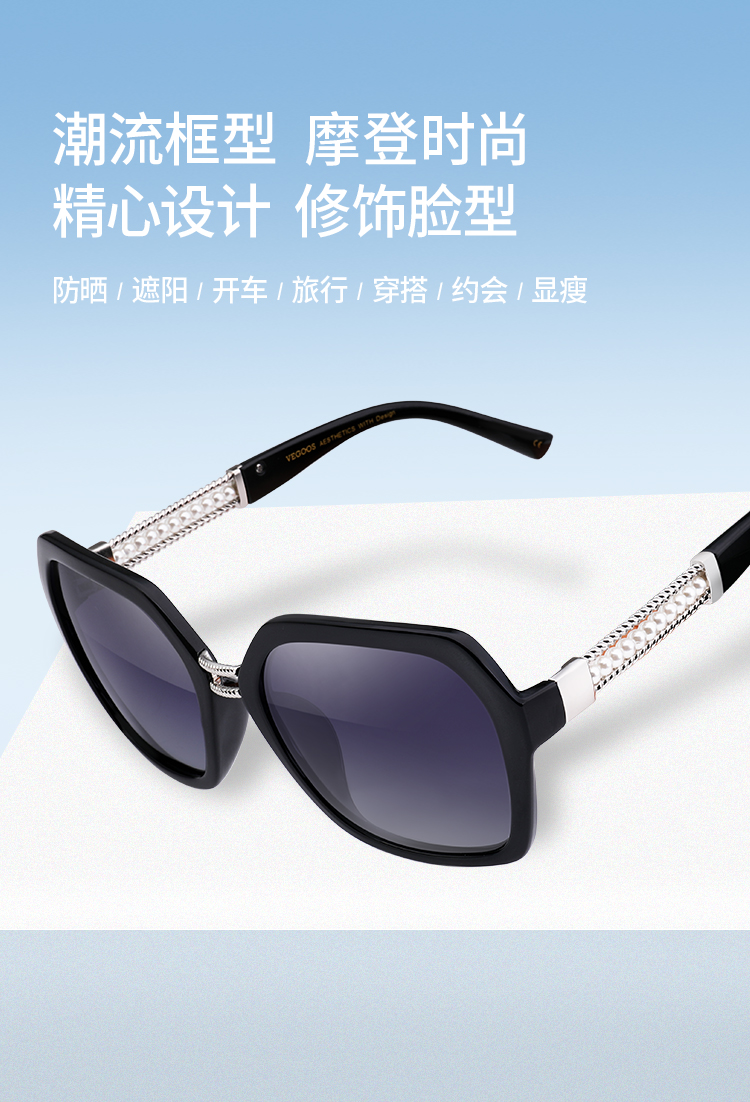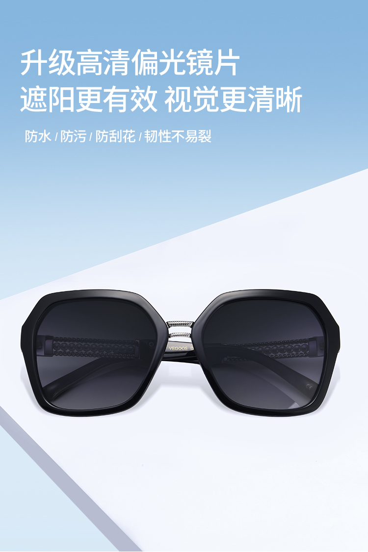 【分销】威古氏女士太阳镜偏光镜片方圆大框墨镜,辅以金属装饰,传递高级设计感