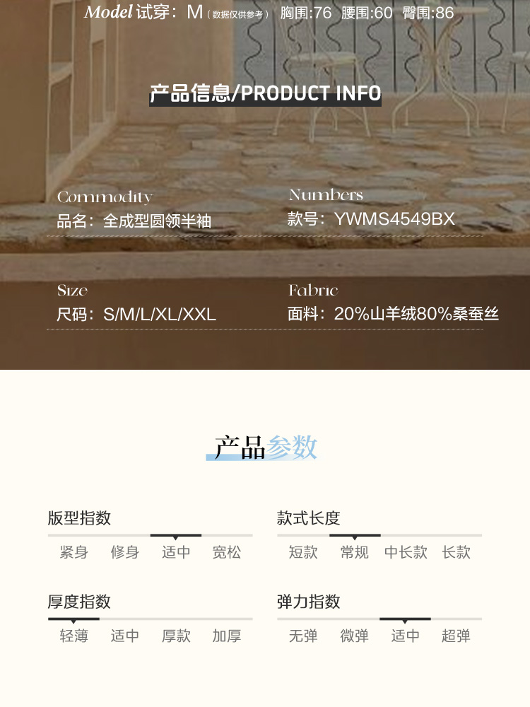 东黎 • 岛屿假日-万能公式 桑蚕丝山羊绒全成型圆领半袖 4549