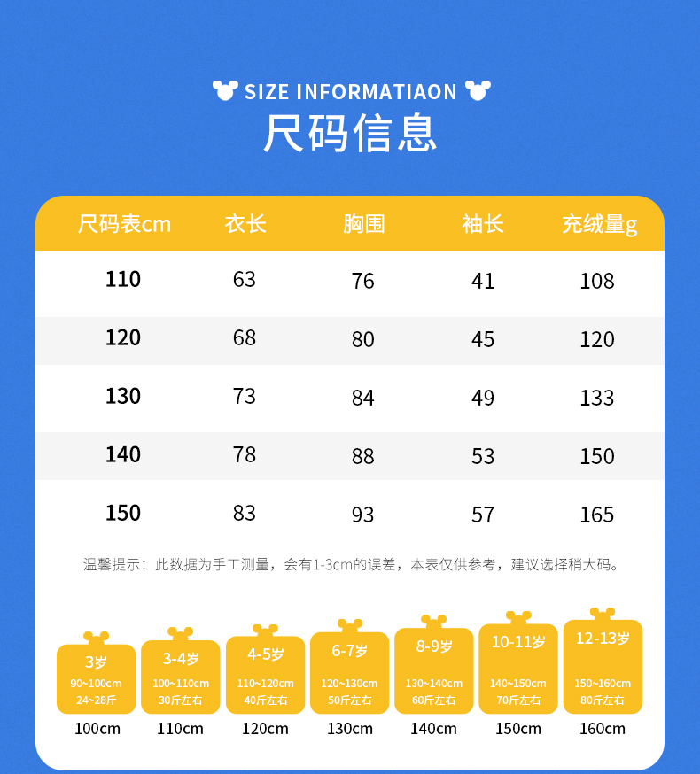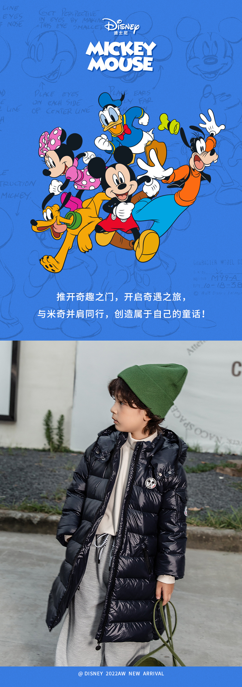 迪士尼2023年中长款儿童羽绒服ED224S039 XHR