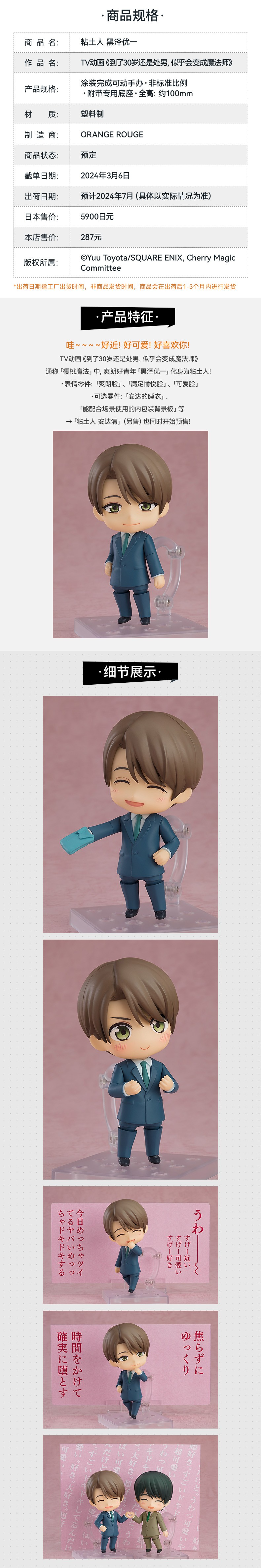 【GSC现货】粘土人 黑泽优一 手办模玩 TV动画「到了30岁还是处男,似乎会变成魔法师」