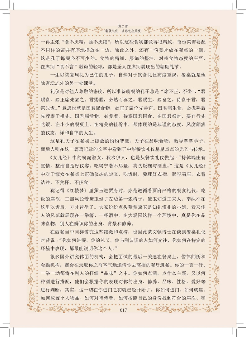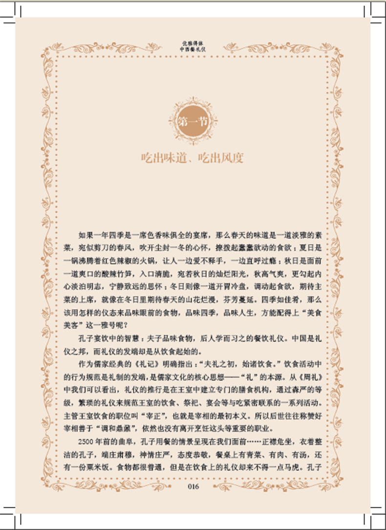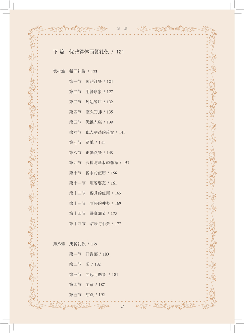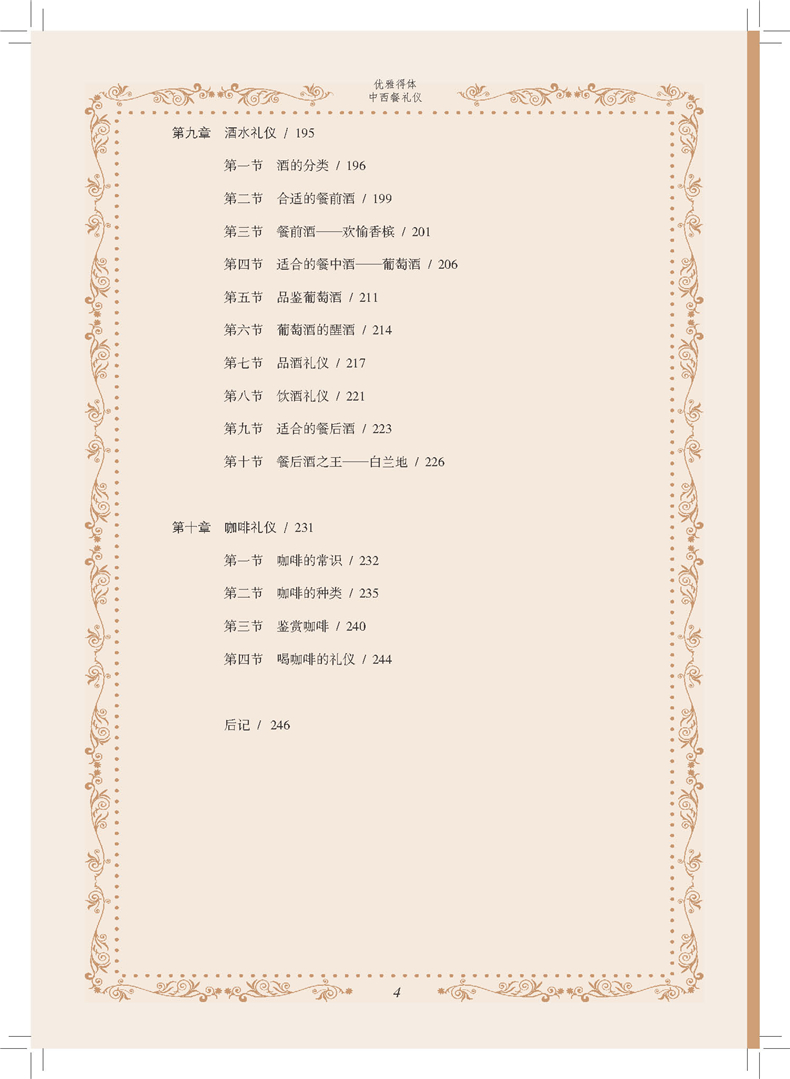《优雅得体中西餐礼仪》一书细致而规范地介绍了源远流长的餐饮文化和优雅得体的用餐礼仪。吃饭不仅仅是享受美食,更是展现个人修养、品位与素质的机会。书中大量的图片示范,细致的文字讲解,从预约、入座、点餐到用餐每一个举止的细节都做了清晰的讲解和描述,帮助读者在享受美食的同时感受到餐饮文化所凝聚的良好人际关系。其中对酒文化、咖啡文化、茶文化的介绍更是与用餐礼仪相得益彰。