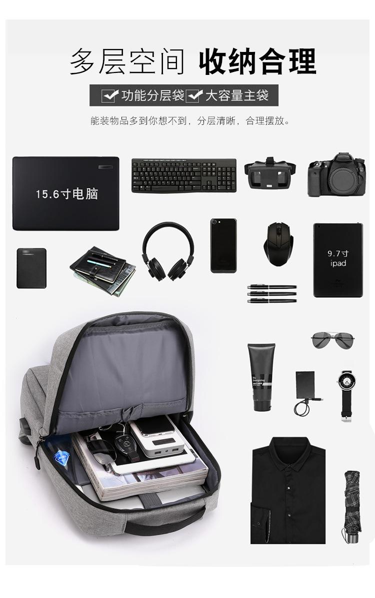双肩包男女士usb充电耐磨背包15.6寸休闲商务旅行电脑包印制logo