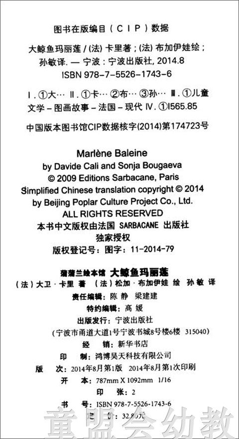 蒲蒲兰 大鲸鱼玛丽莲 大卫·卡里 3-4-5-6岁儿童读物 正版