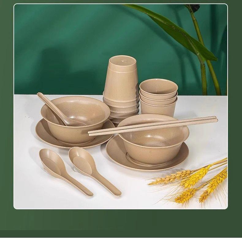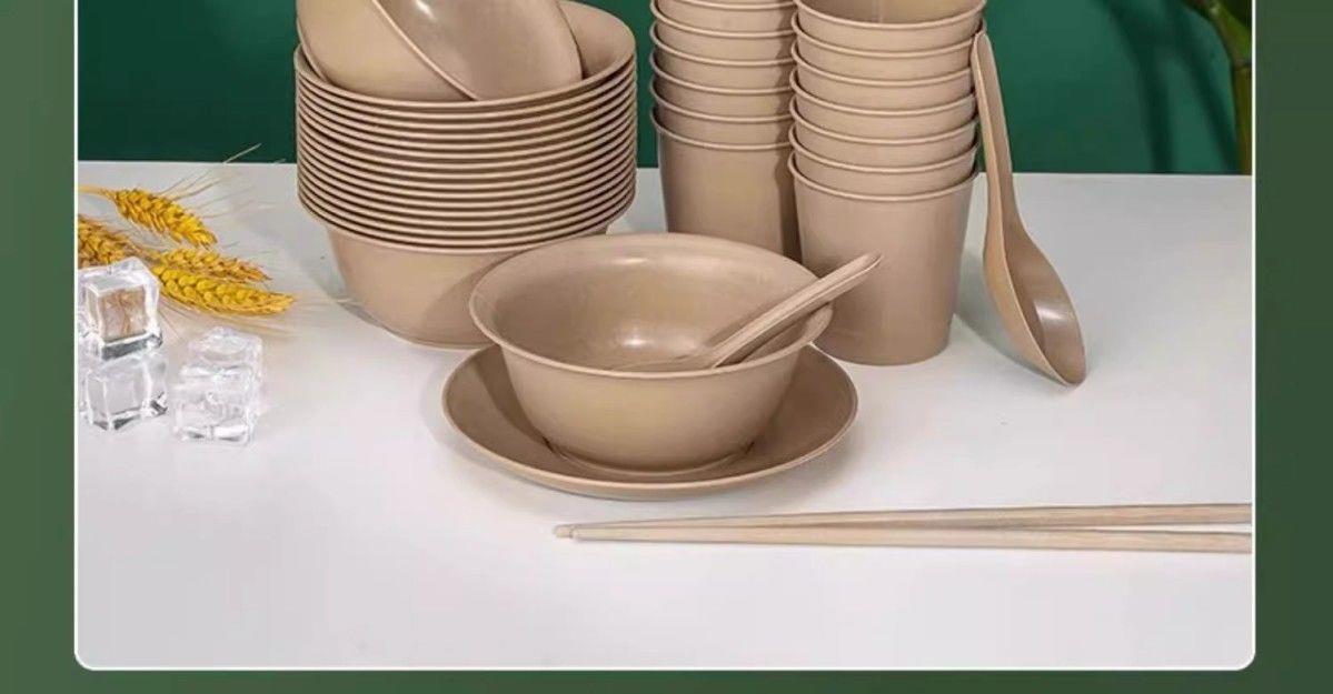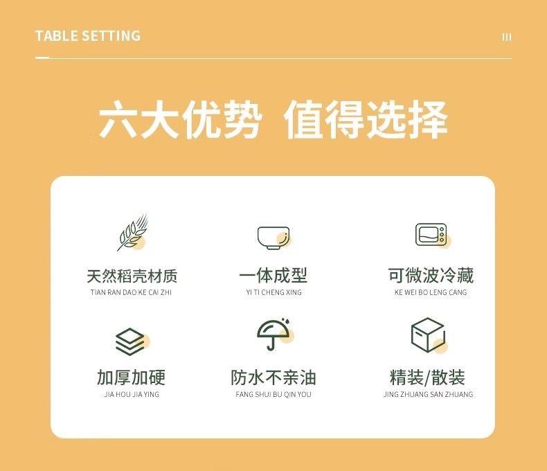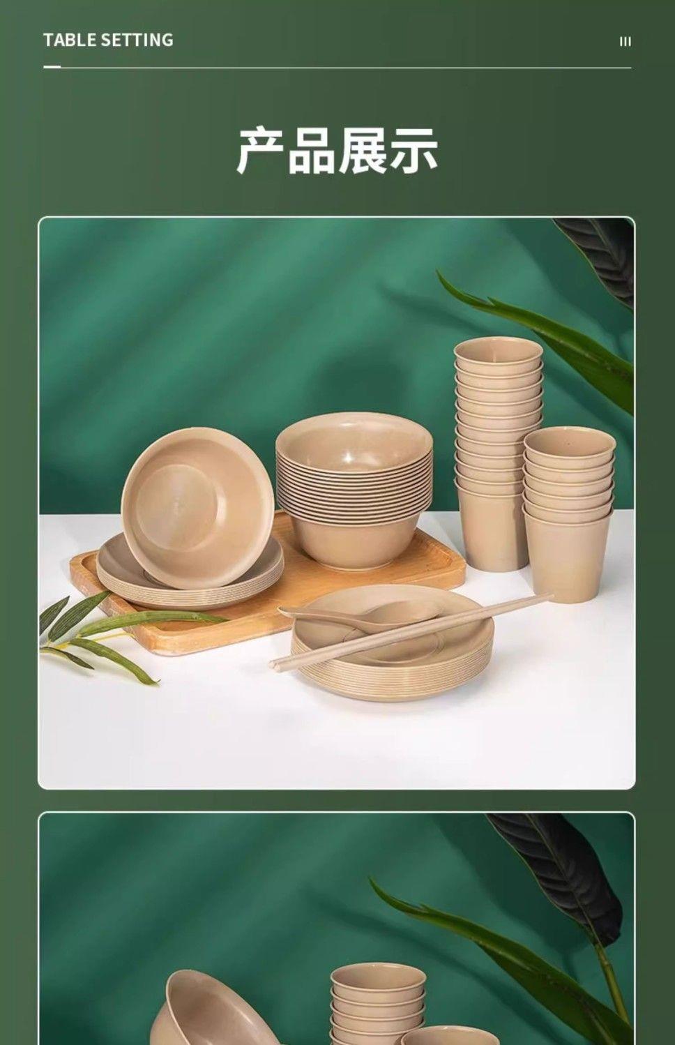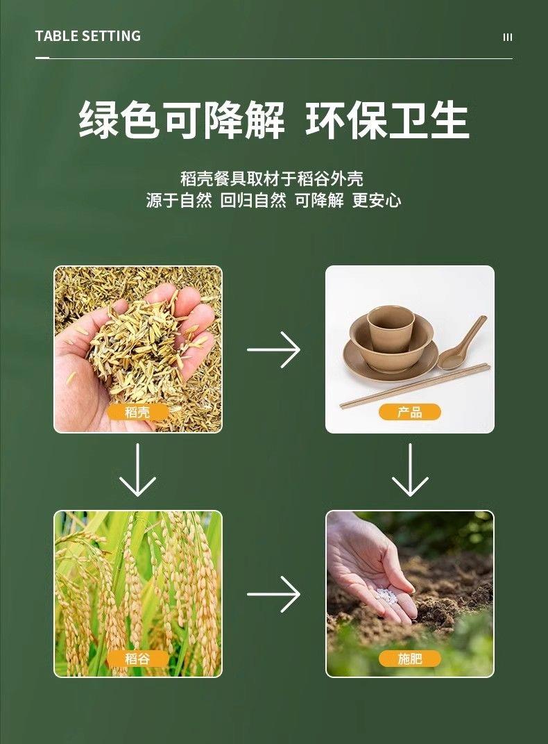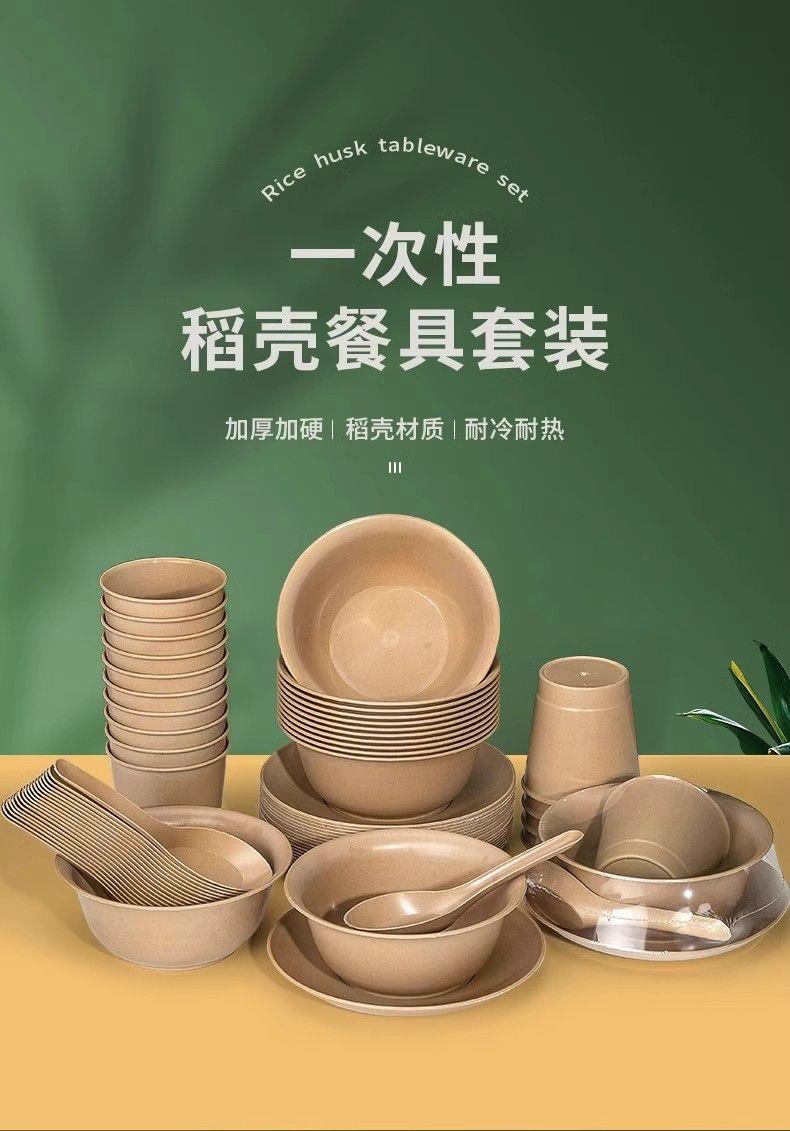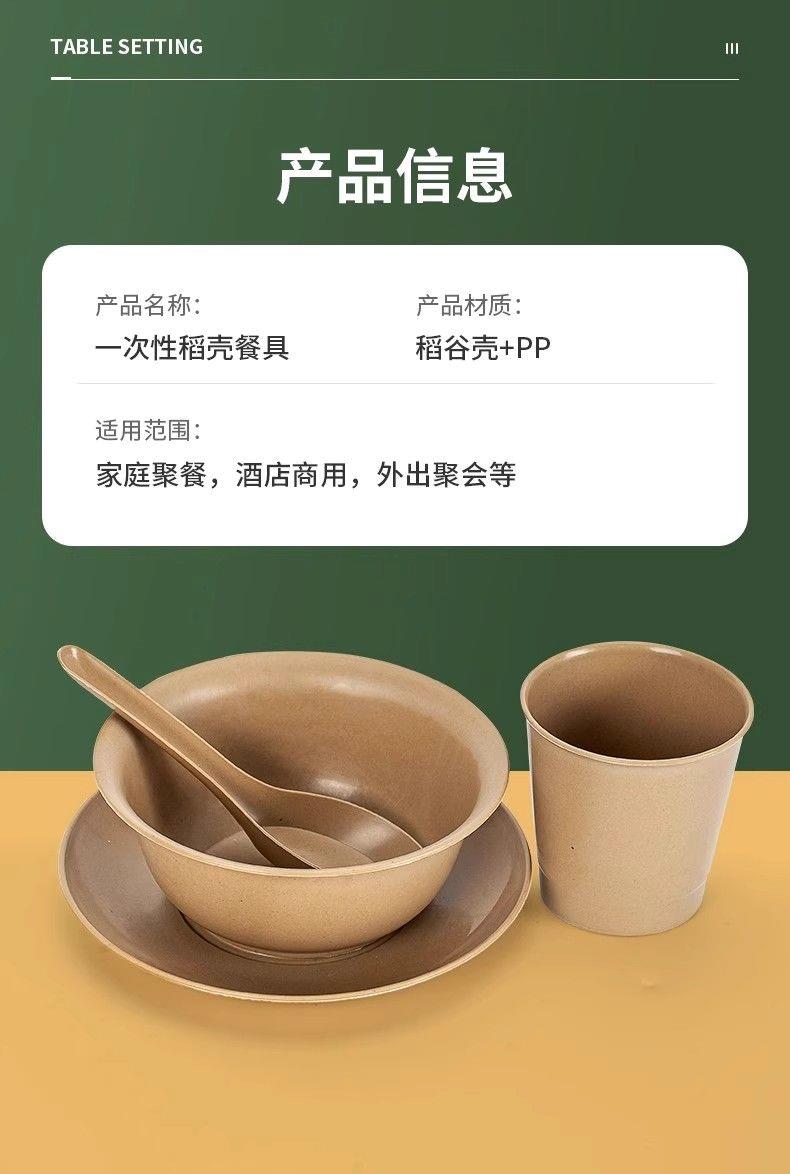 【野炊好物!一次性稻壳餐具!】一次性稻壳餐具碗筷盘杯子套装结婚春游食品家用饭碗可降解四件套-24XPXH013