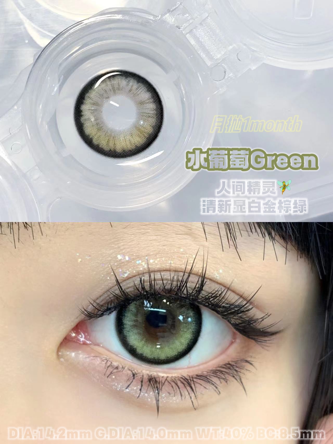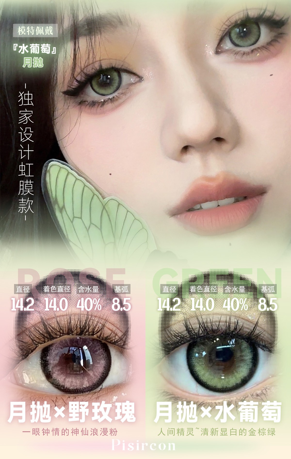 pisircon月抛 水葡萄 绿/野玫瑰 粉 14.2mm