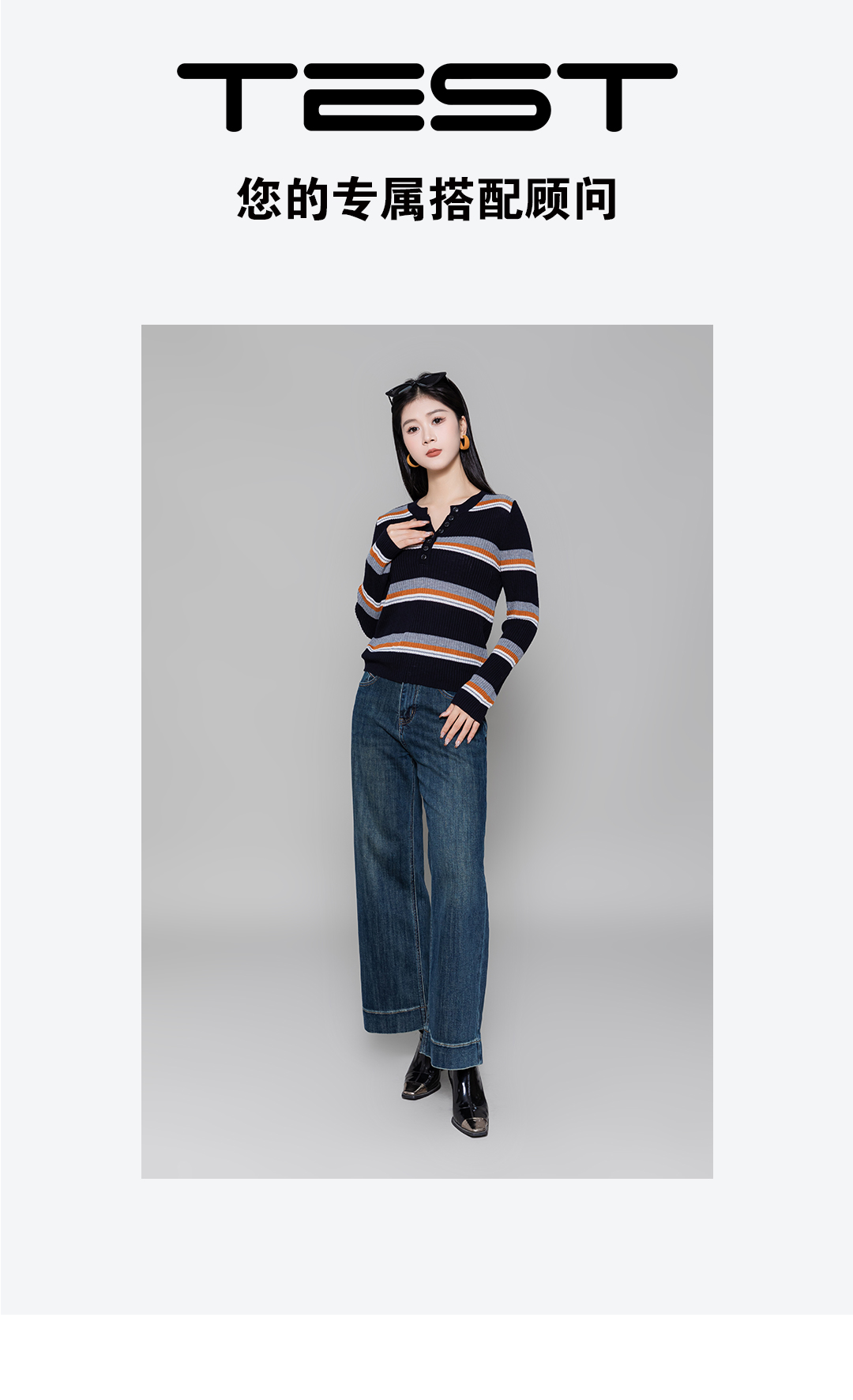 冬上新复古撞色条纹小V领纽扣设计毛衣1254039 商品图2