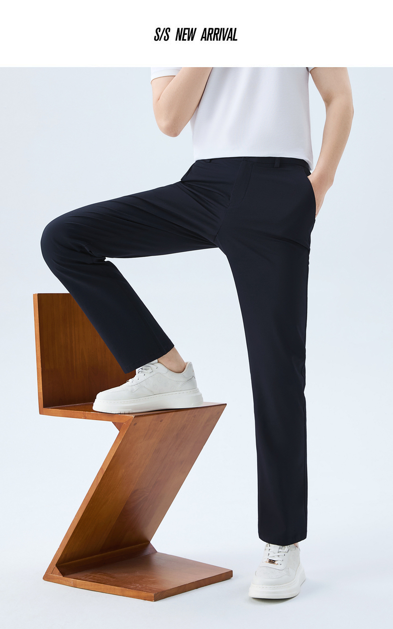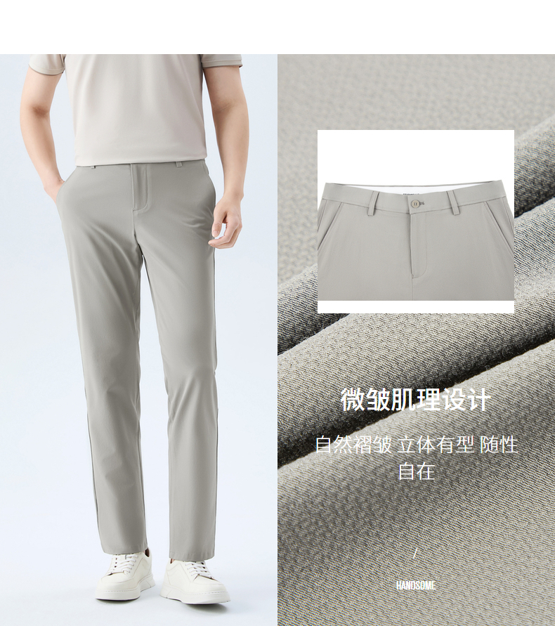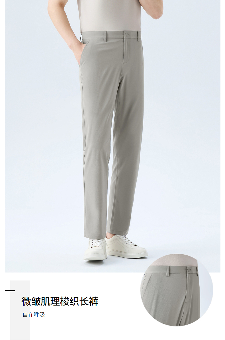 【锦氨】柒牌男装2026夏季新款微皱肌理微弹柔软有型休闲梭织长裤 130H70620