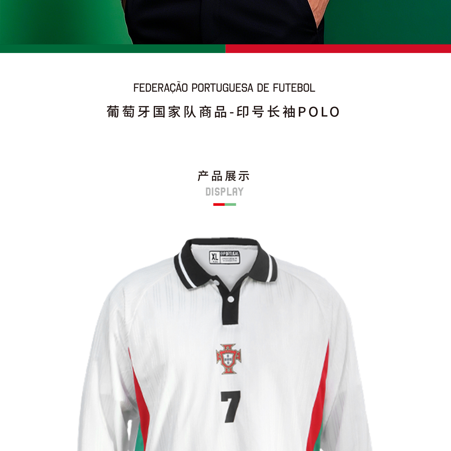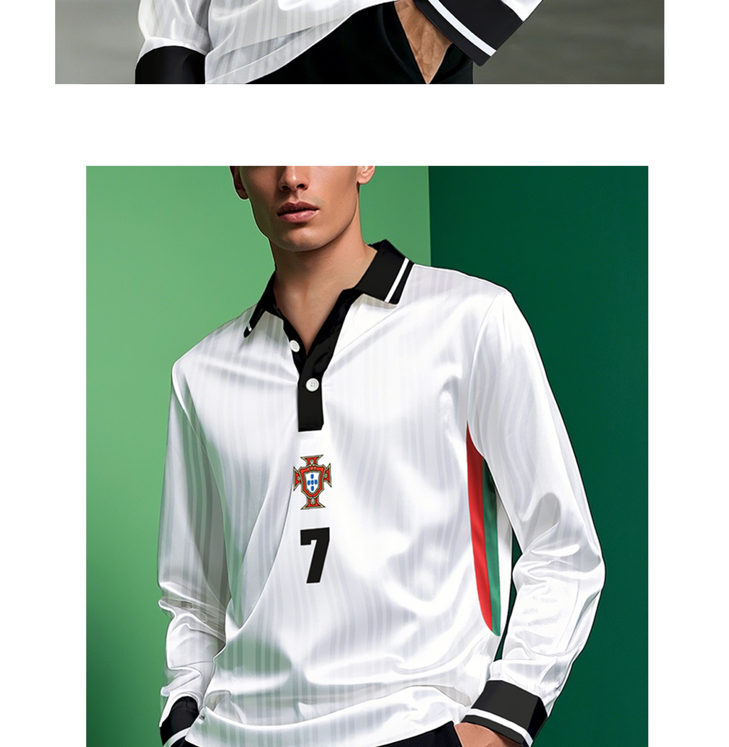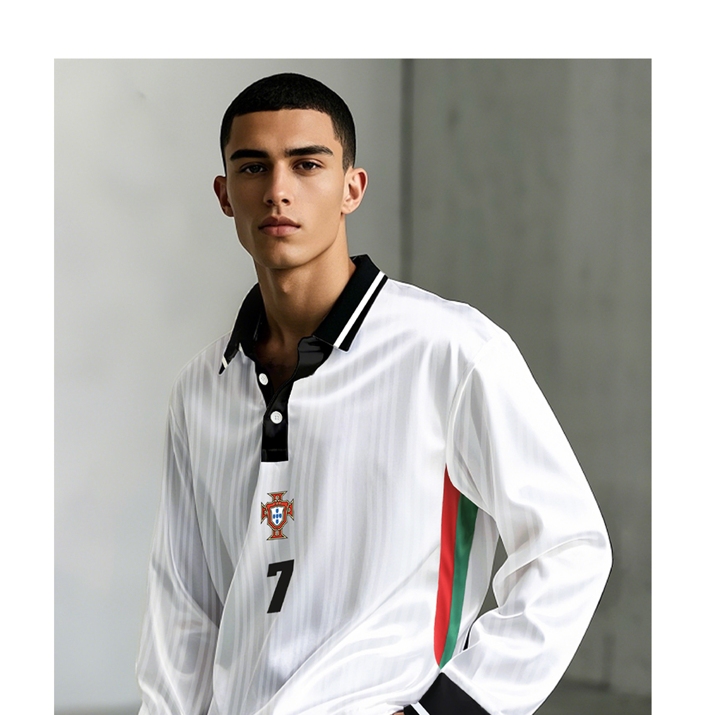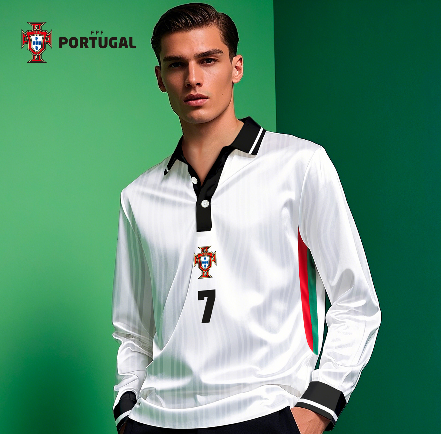 【官方正版】葡萄牙国 家队 | 白色暗纹印号长袖C罗POLO领球迷
