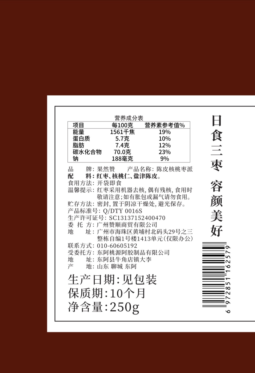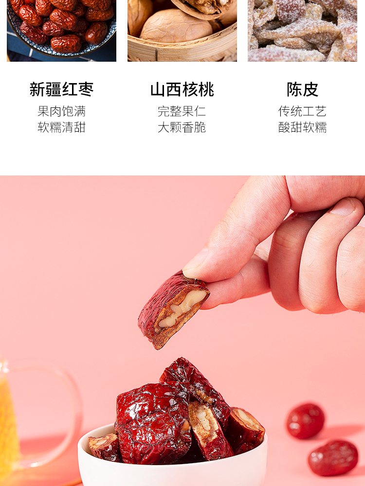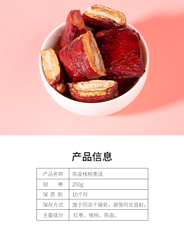 正安国货铺 陈皮核桃枣派 陈皮红枣夹核桃红枣派零食 250g 包邮