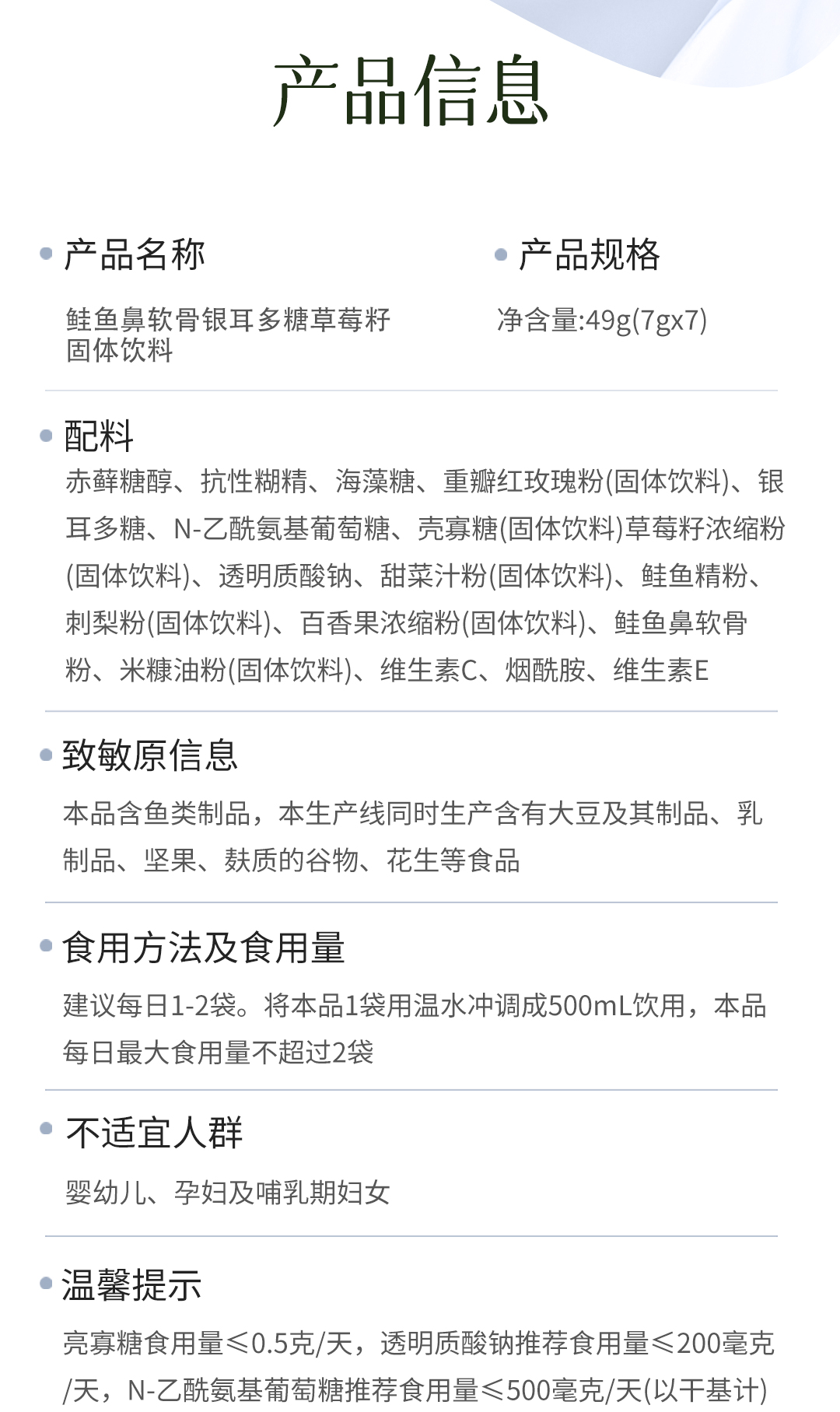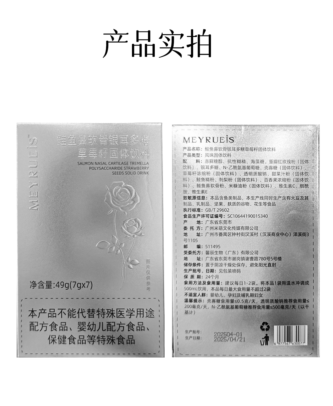 【玫瑰水光饮】MEYRUEiS鲑鱼鼻软骨银耳多糖草莓籽固体饮料