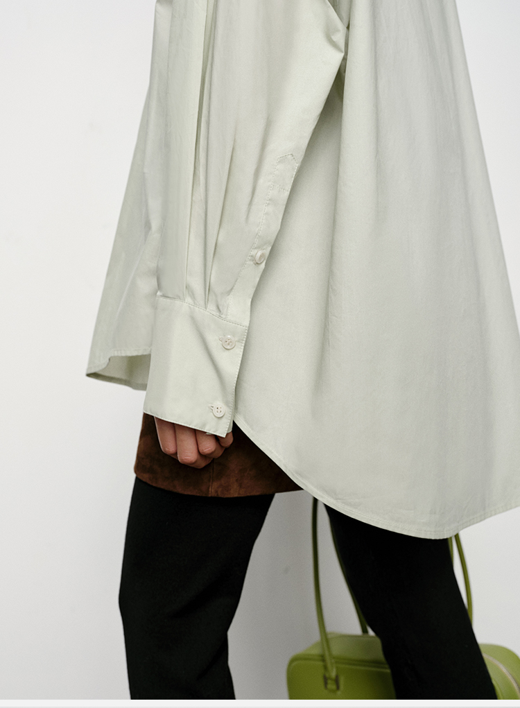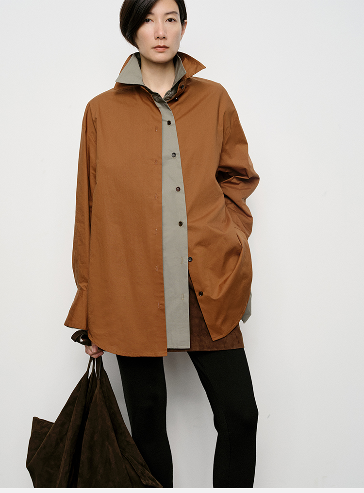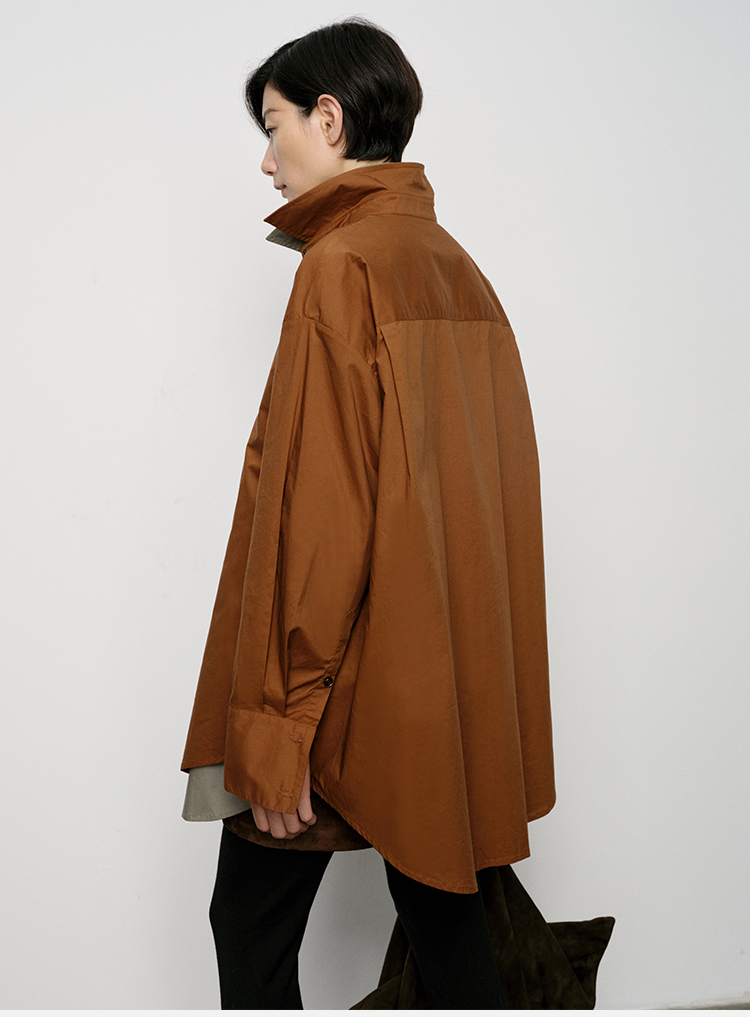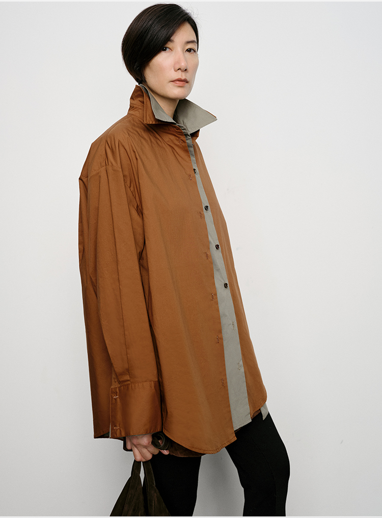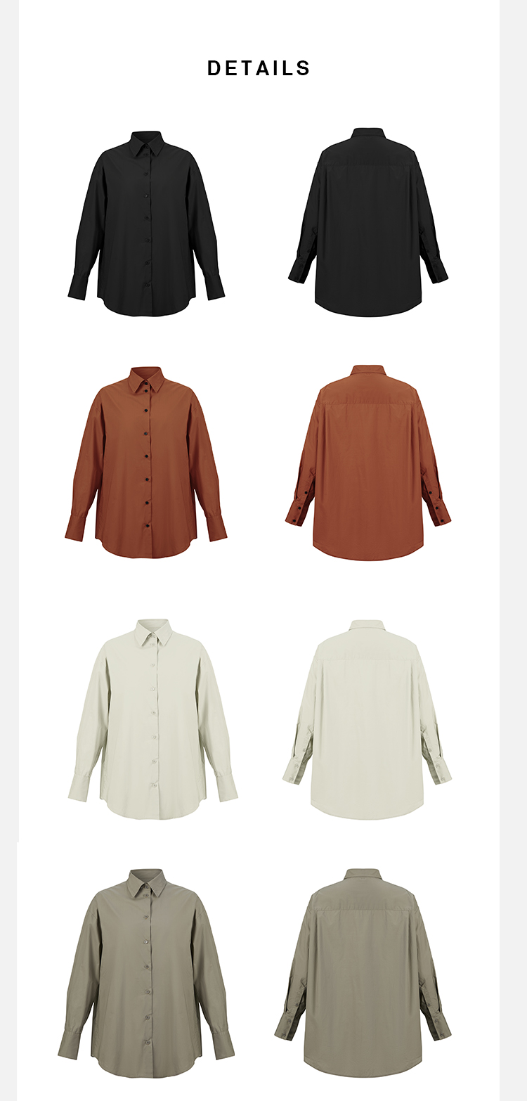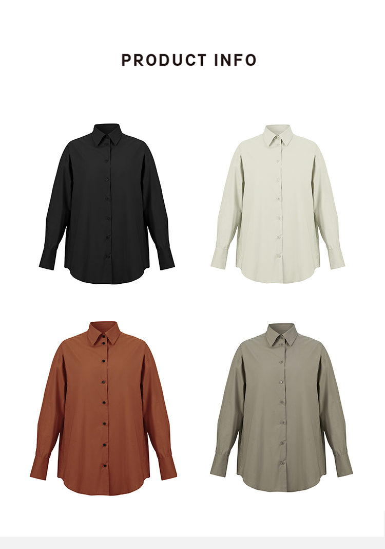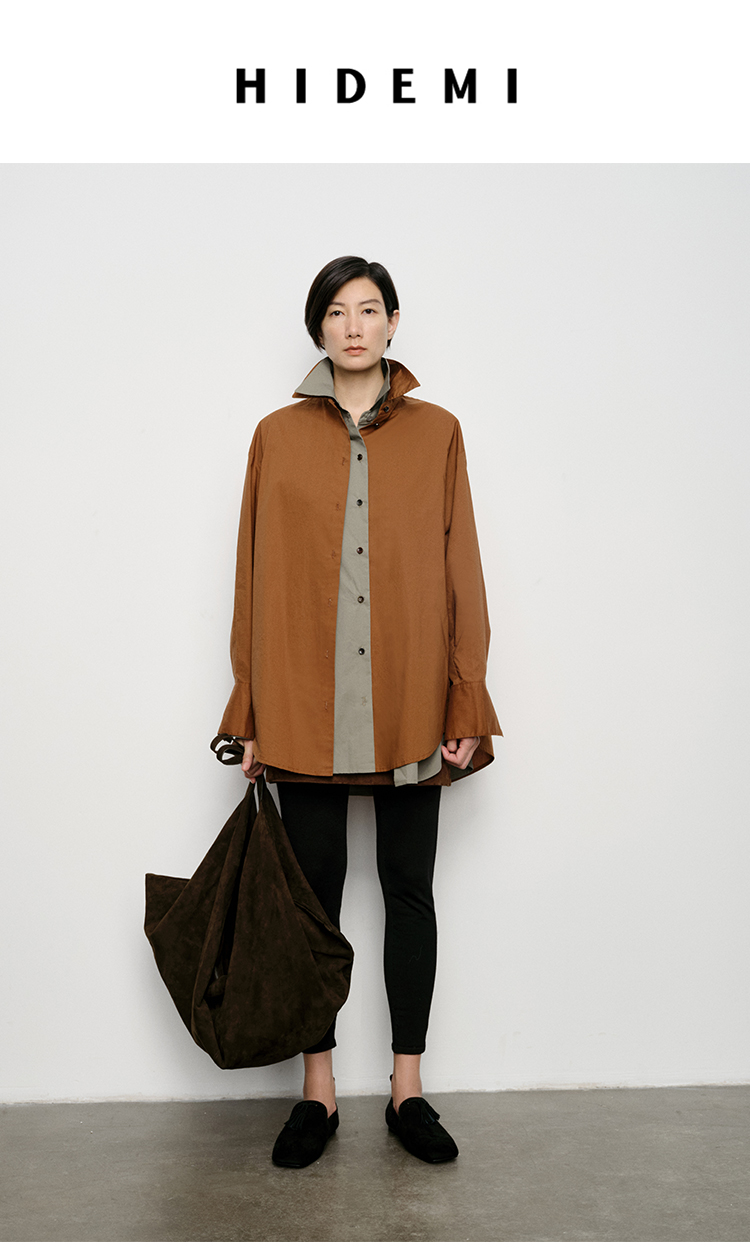 HIDEMI 经典极简廓形款水洗棉衬衫 砖红色/黑色/海鸥灰绿/浅豆绿