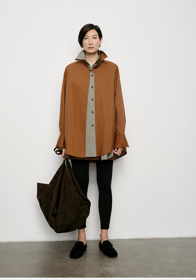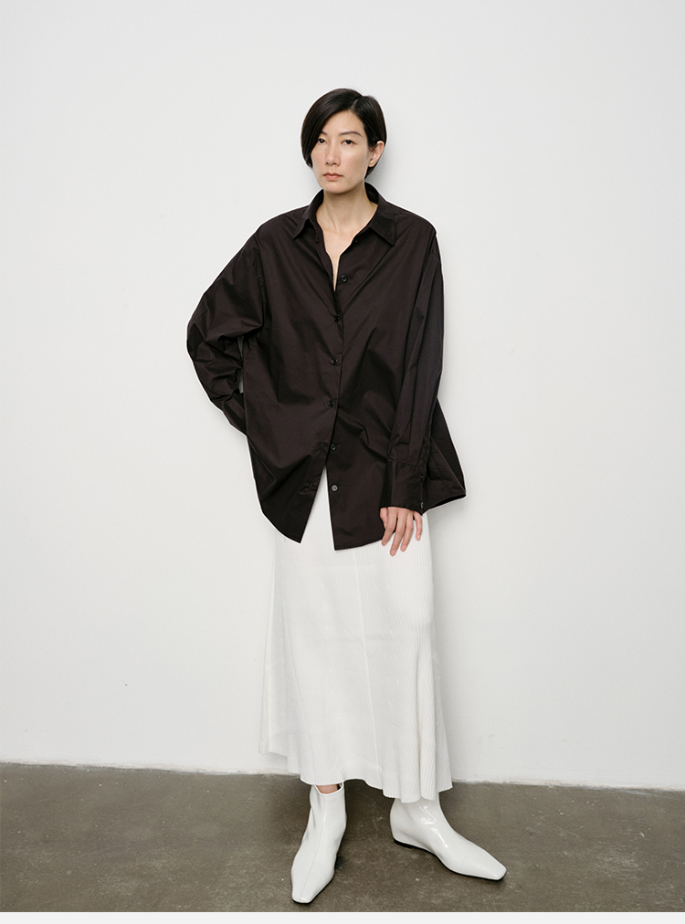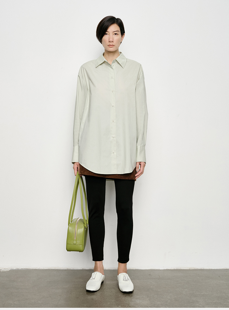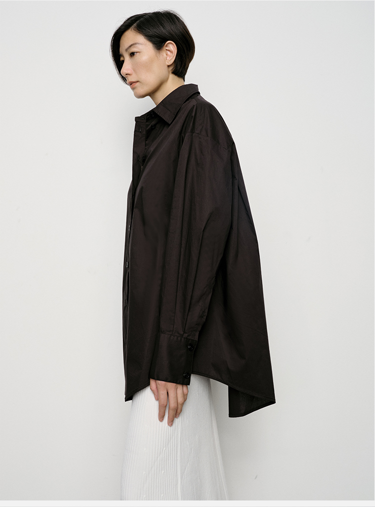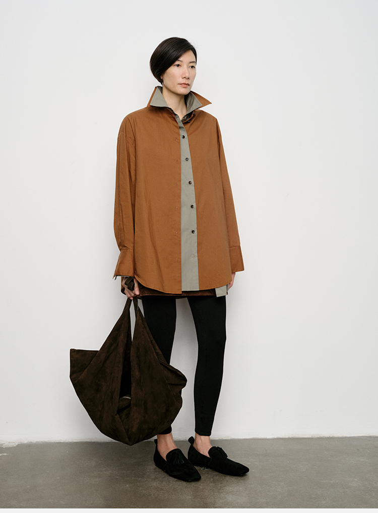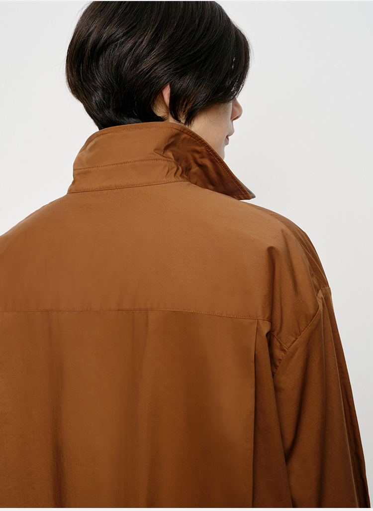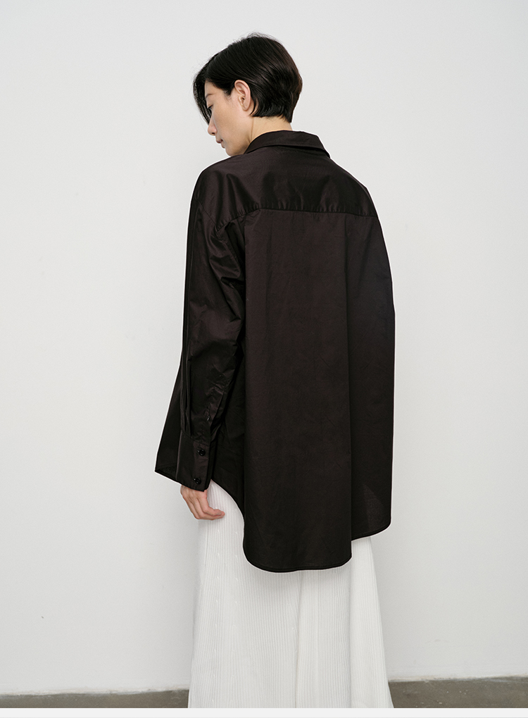 HIDEMI 经典极简廓形款水洗棉衬衫 砖红色/黑色/海鸥灰绿/浅豆绿
