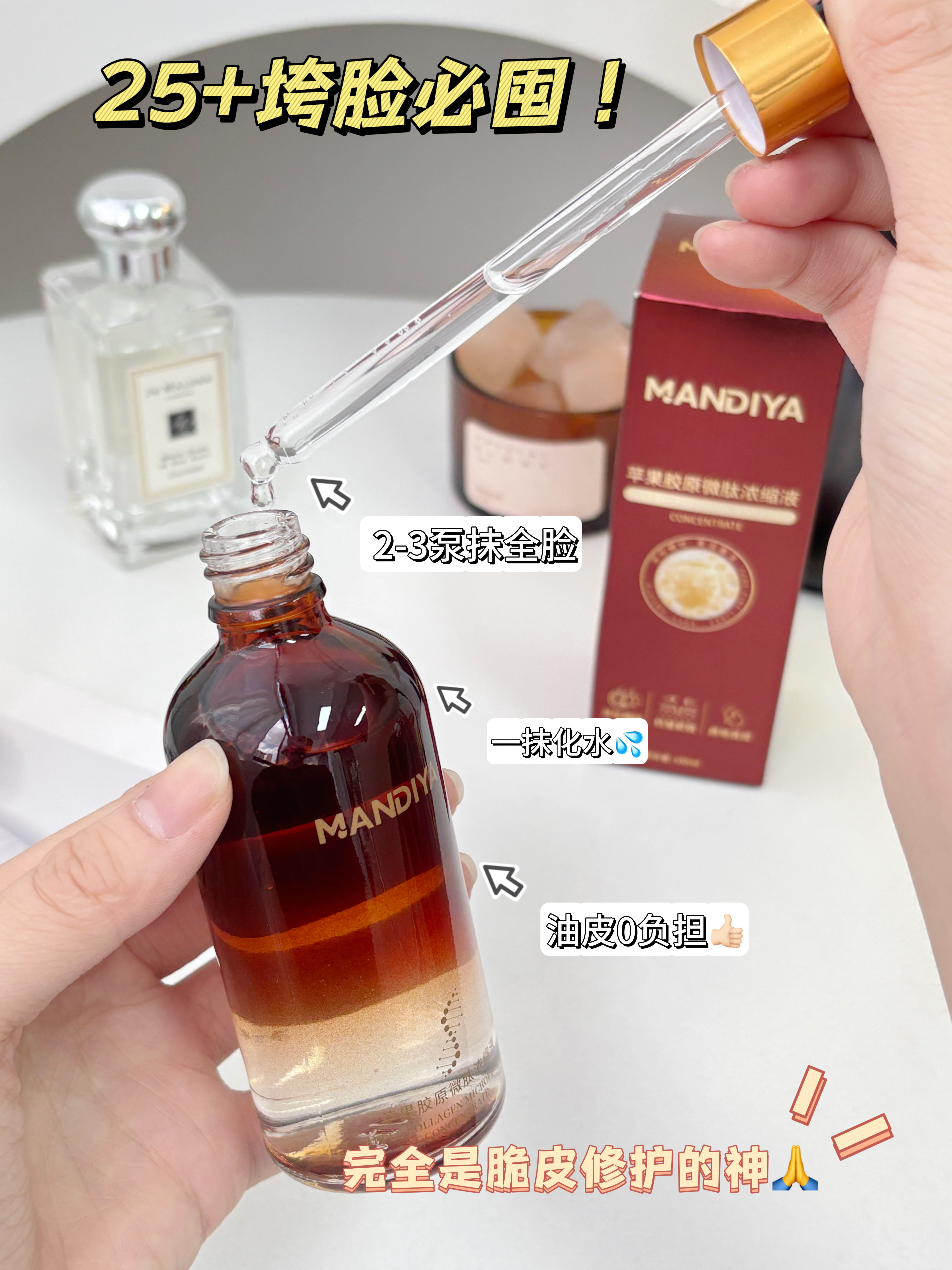 🔥抗老救星来了‼️【MANDIYA苹果胶原微肽浓缩液】干纹松垮一网打尽👉🏻🥰29.9元拍一发二‼️再送便携滴管❗线下同款要100+,今天囤超划算‼️手慢无👋🏻