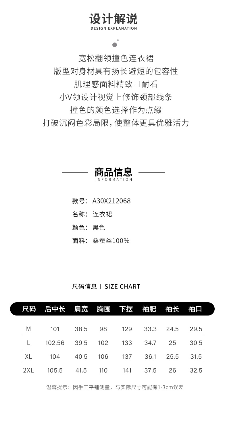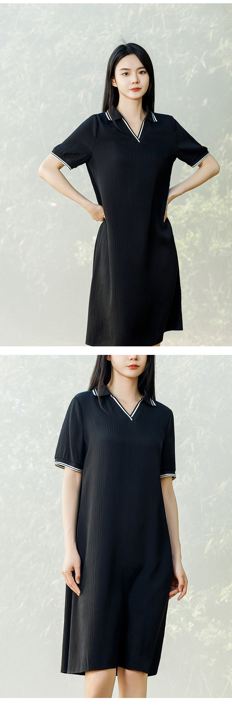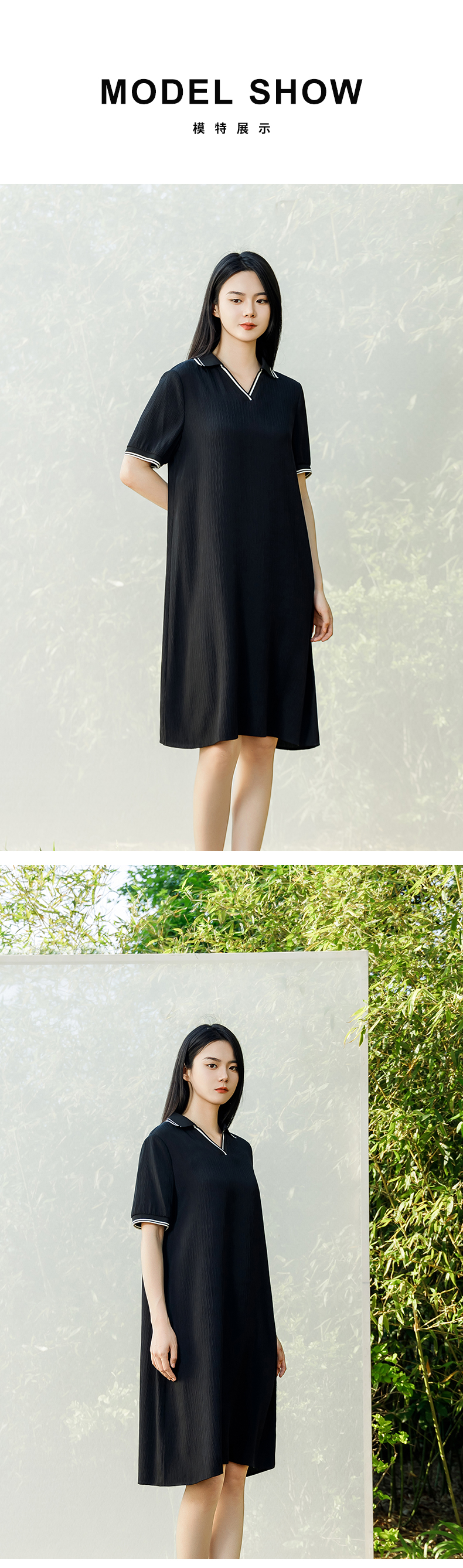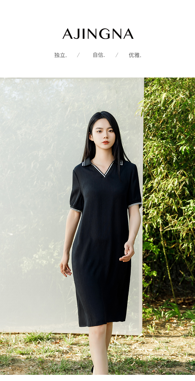 【商场同款】阿菁娜2024夏季新款宽松翻领撞色连衣裙A30X212068