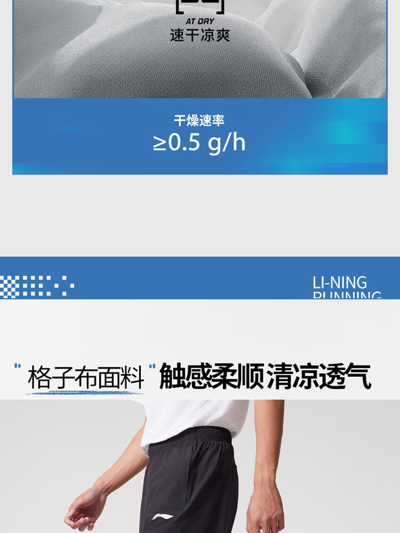 李宁 男款清凉速干透气舒适反光休闲百搭运动裤