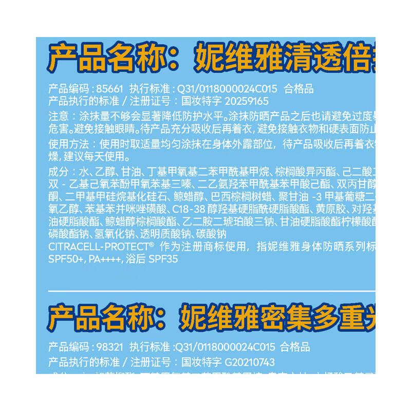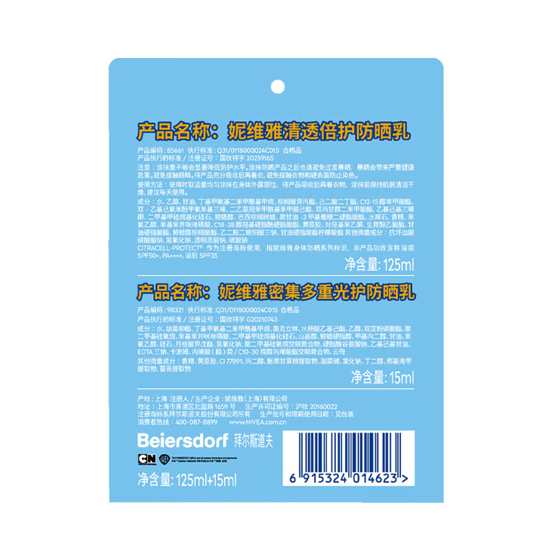 妮维雅清透倍护防晒乳125ml