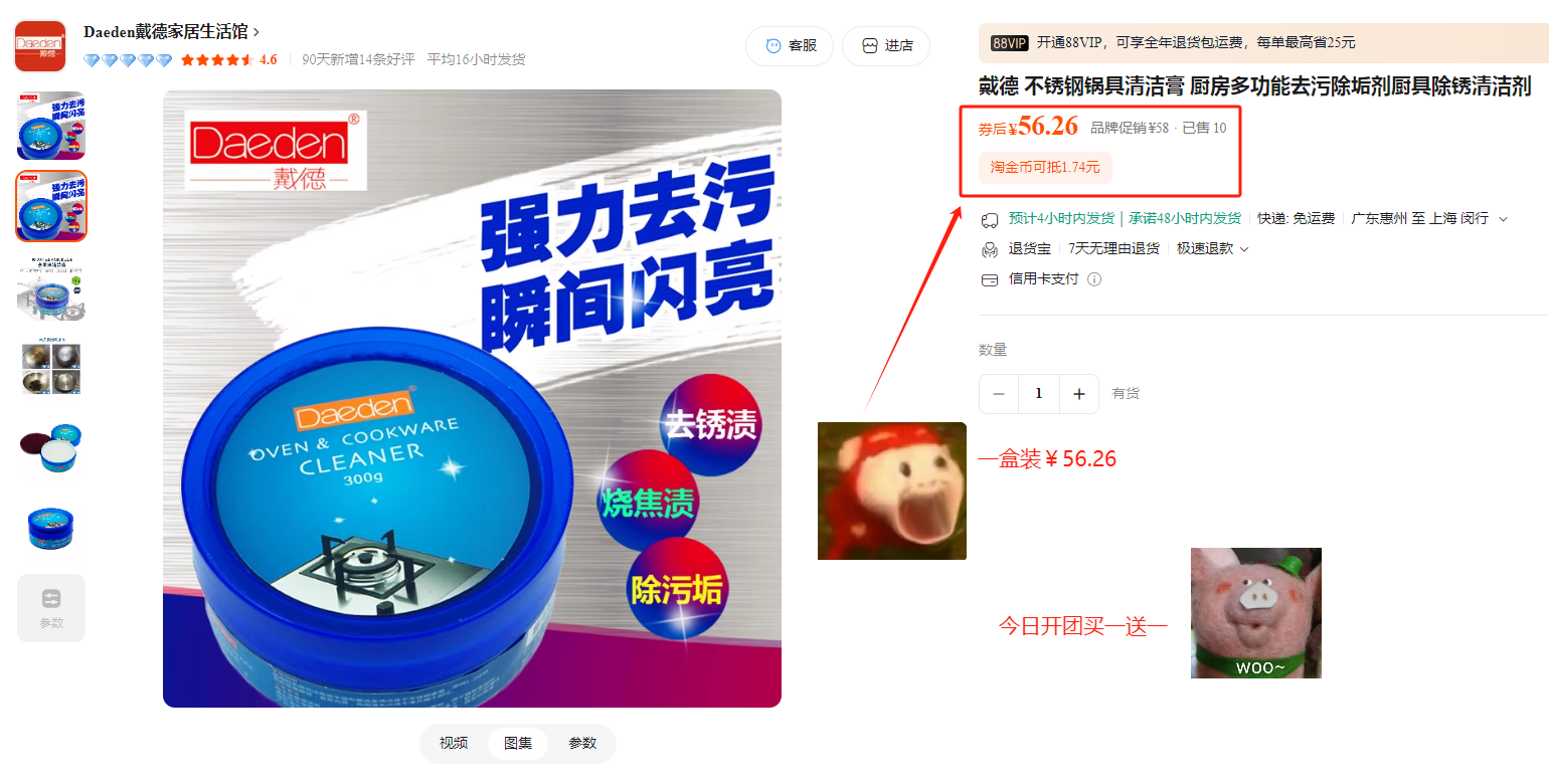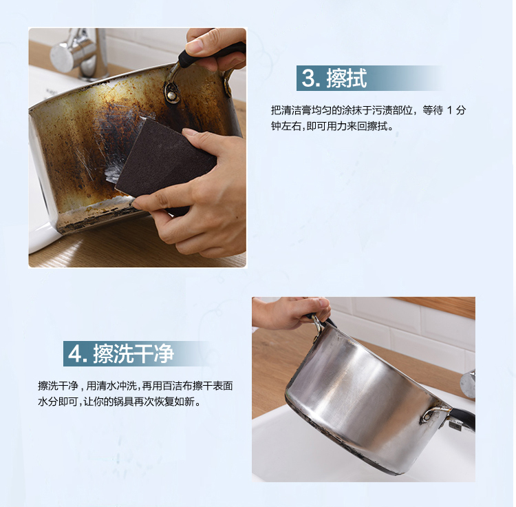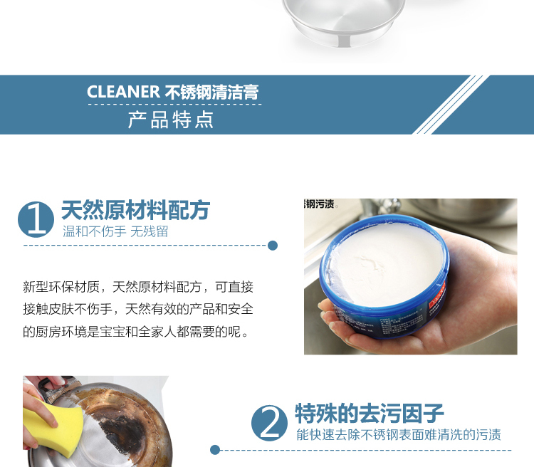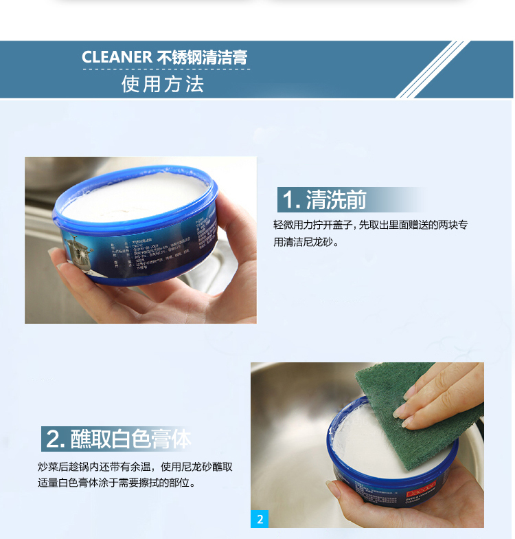 买一送一,另外赠送专业清洁尼龙砂2片!【不锈钢清洁膏】清洁、杀菌、抛光三效合一!天然椰子油,去污不伤手,浴室瓷砖、锅具、餐具都可以清洁,不添加氯,健康无异味!