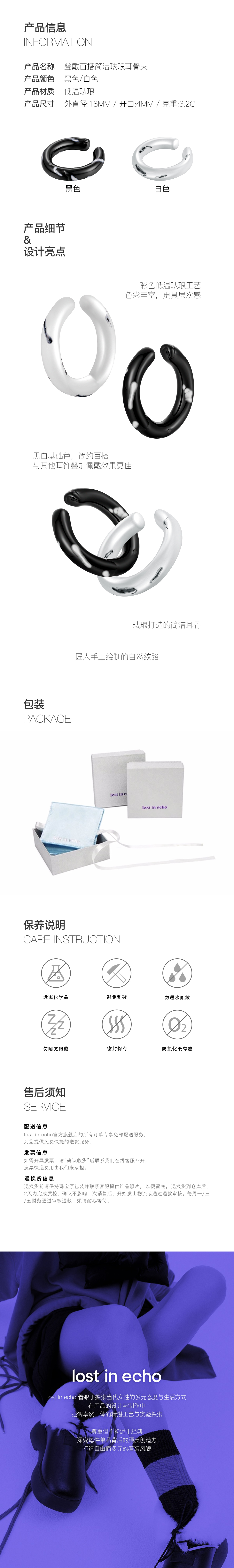 lost in echo 设计感轻奢小众叠戴百搭简洁珐琅耳骨夹