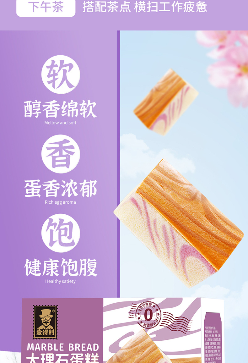 【醇香绵软!大理石蛋糕】不单独添加蔗糖香芋味 糕点心营养 早代餐面包整箱 早餐搭档健康饱腹