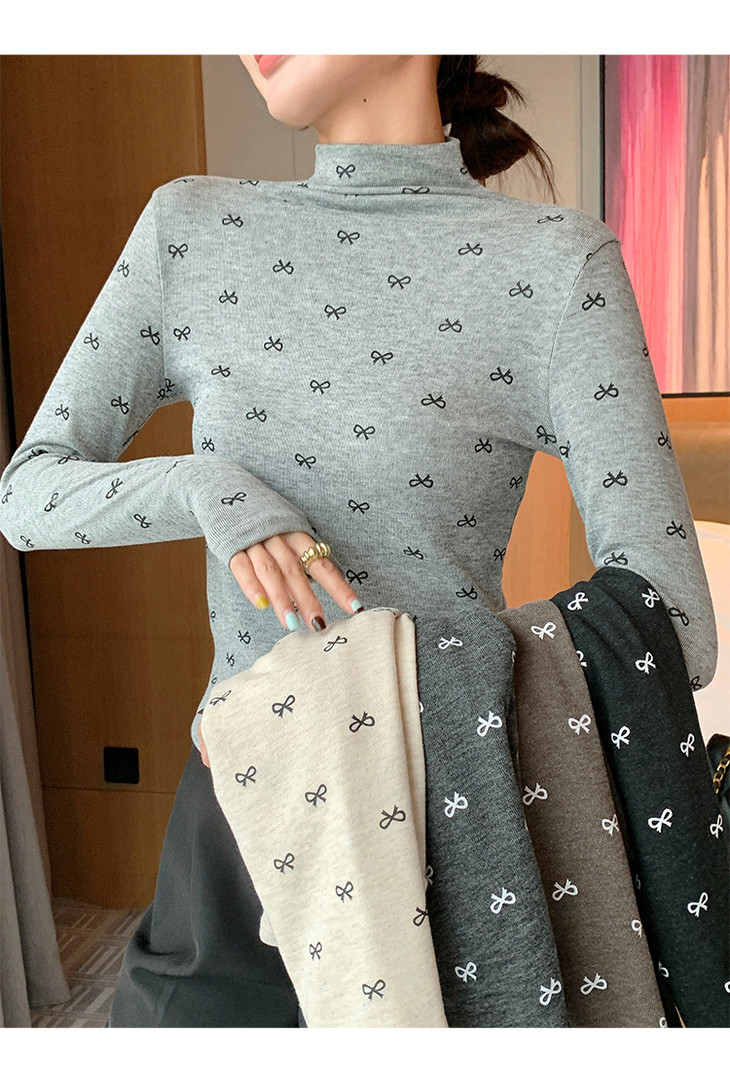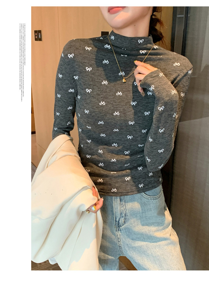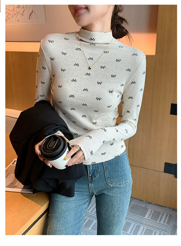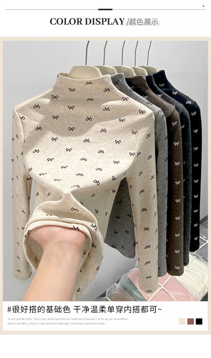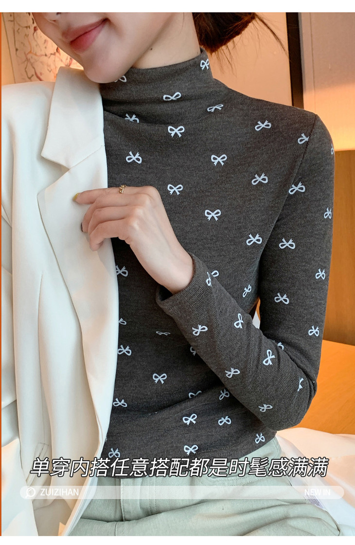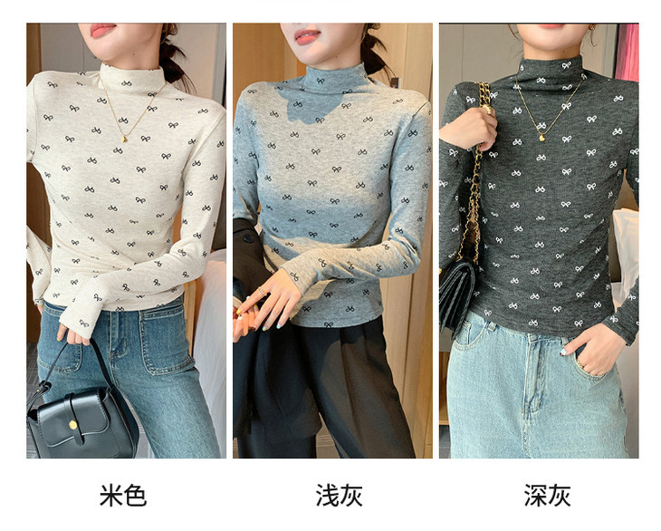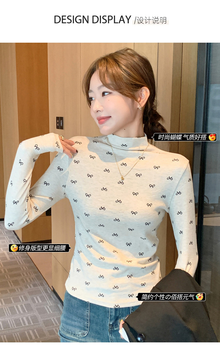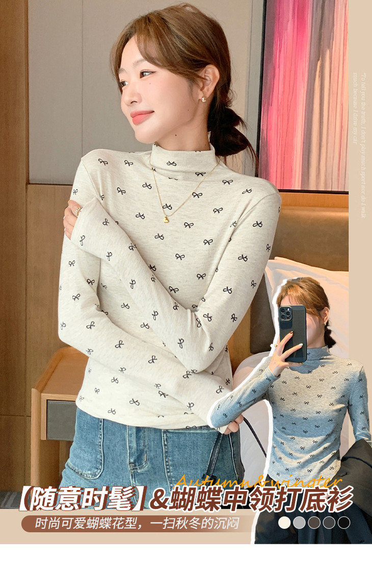 买1送1 半高领洋气女内搭打底衫修身上衣显瘦蝴蝶结碎花长袖