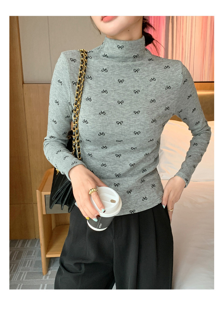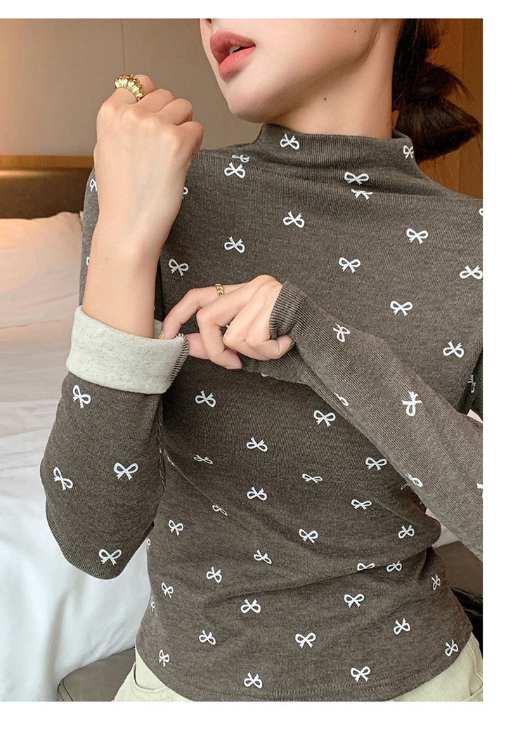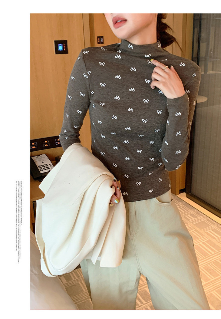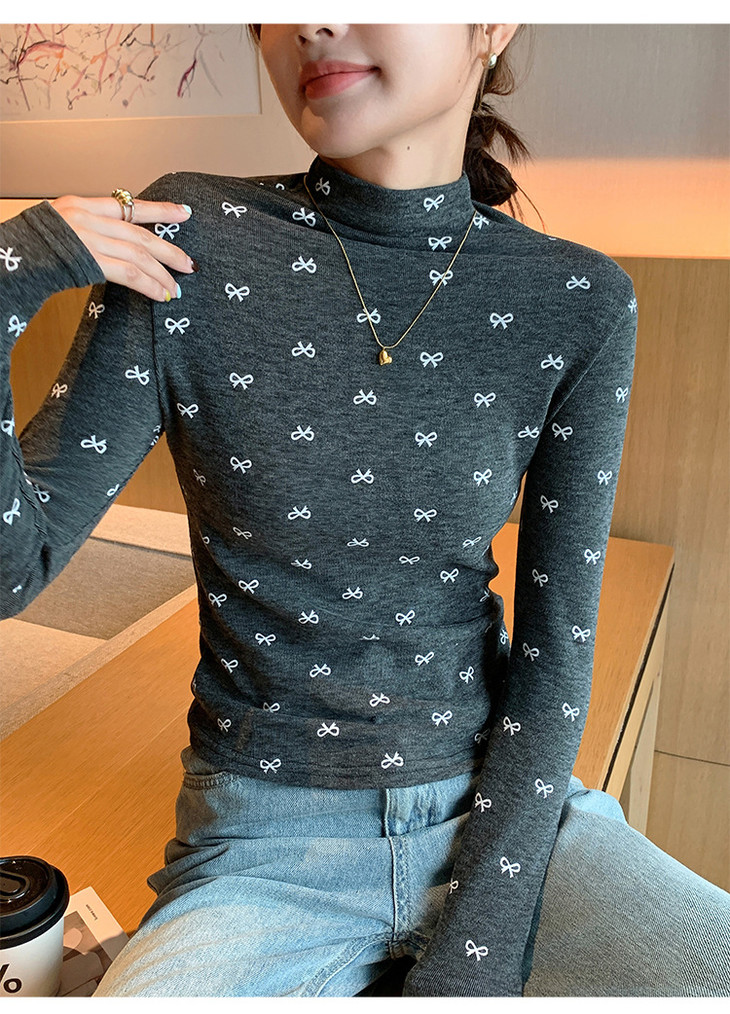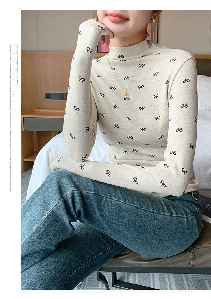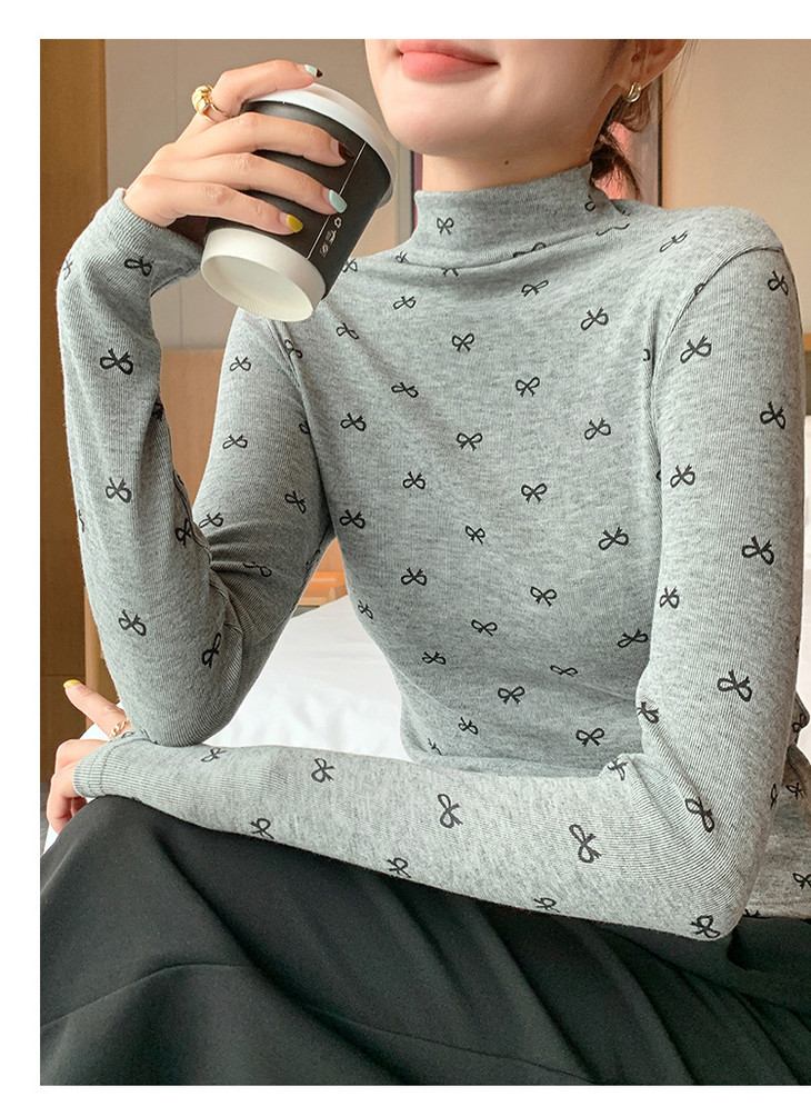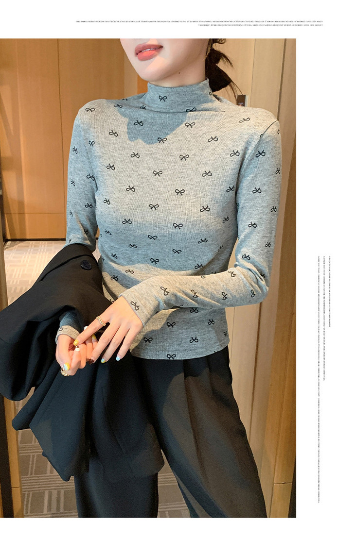 买1送1 半高领洋气女内搭打底衫修身上衣显瘦蝴蝶结碎花长袖