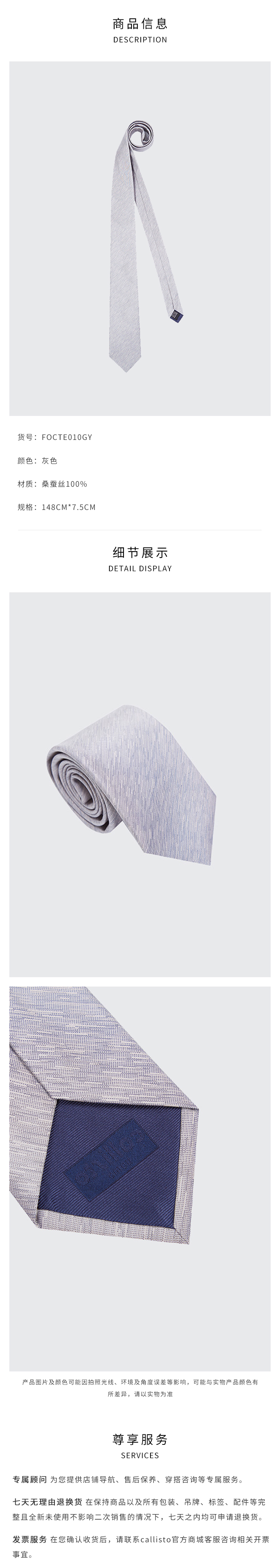 callisto灰色全桑蚕丝领带 FOCTE010GY