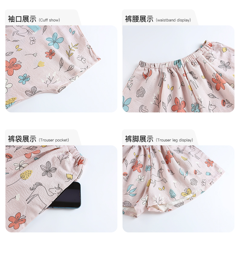 【可人儿&独角兽】小众新款泡泡绵女士睡衣夏季短袖家居服三件套