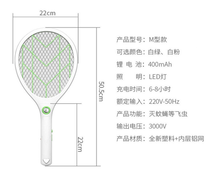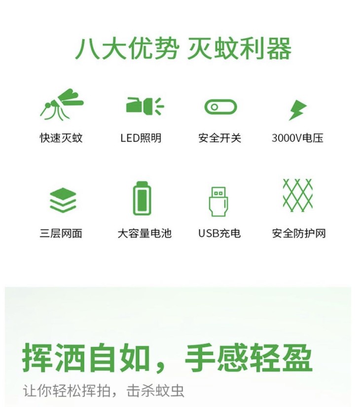 充电式电蚊拍,三层大网面强效灭蚊虫