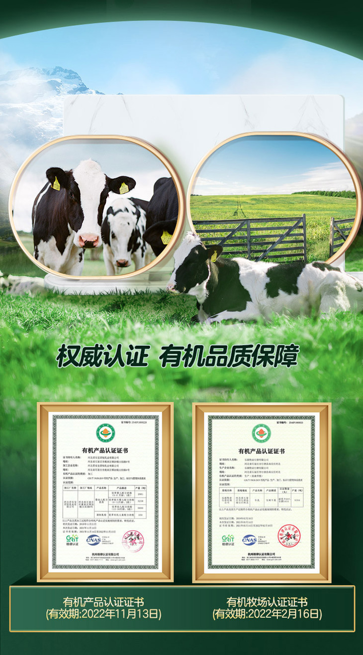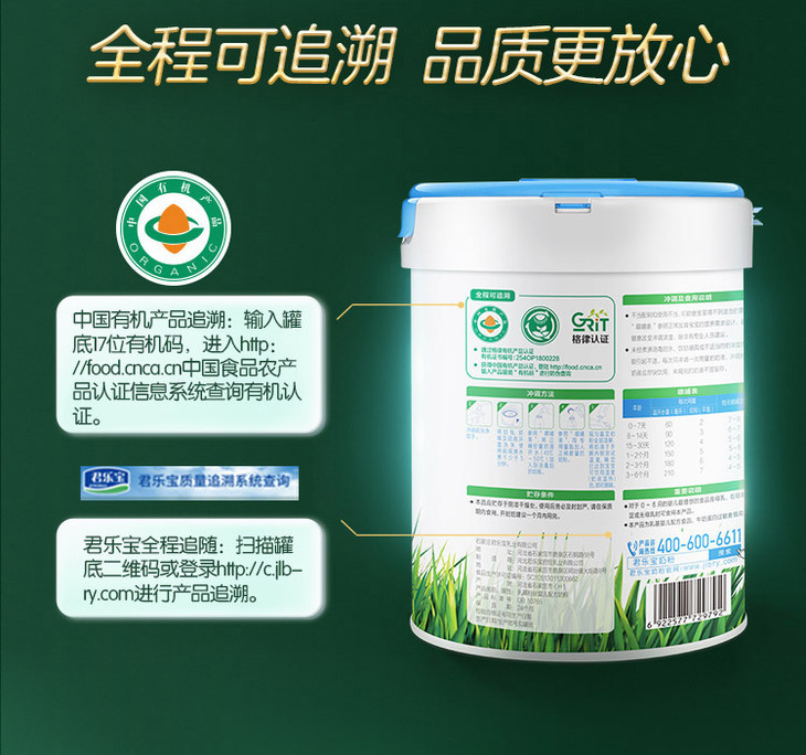 君乐宝优萃有机1段奶粉800g婴幼儿牛奶粉一箱6桶