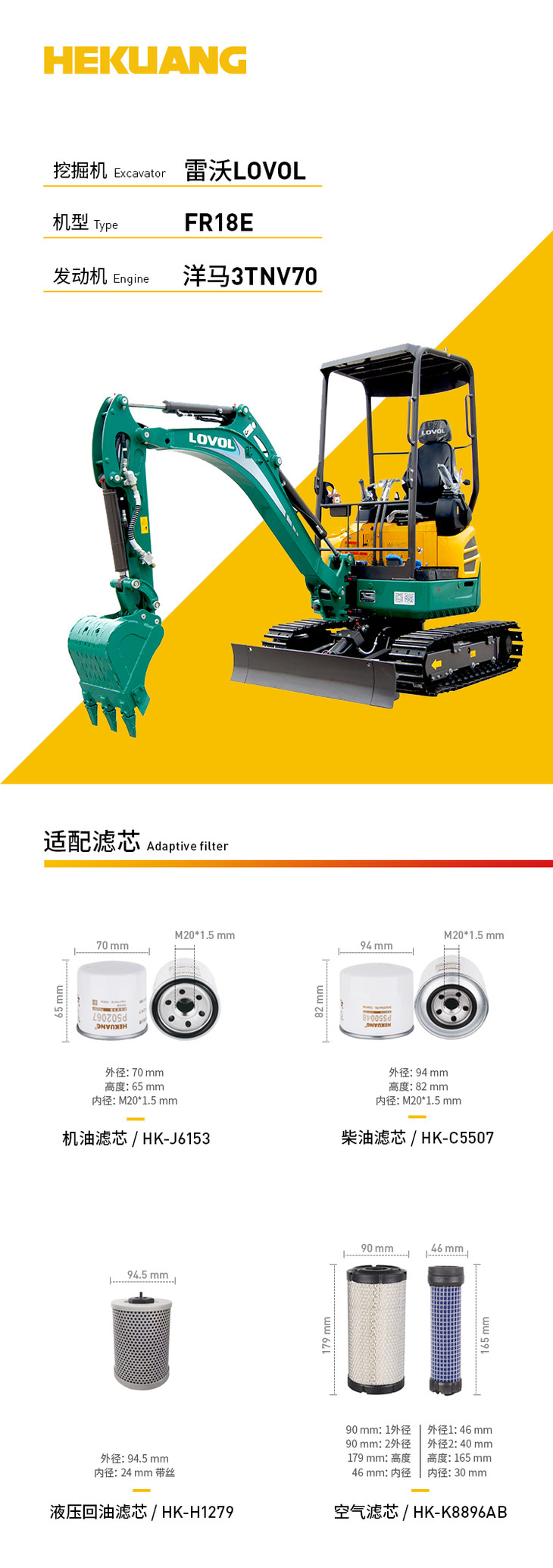 【雷沃FR18E/FR18F-u/FR20F-u】挖掘机专用滤清器 机柴空气液压滤芯