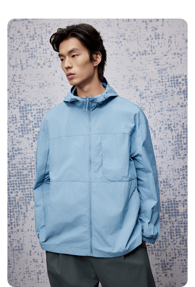 GXG男装 浅蓝色暗格肌理防晒服透气时尚通勤夹克外套25夏热卖