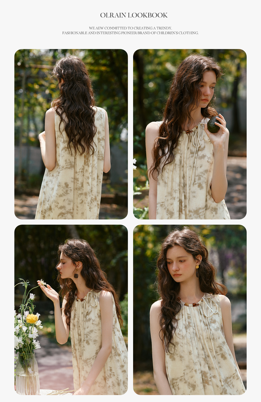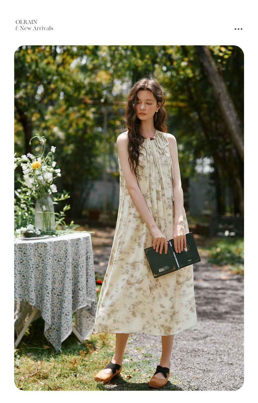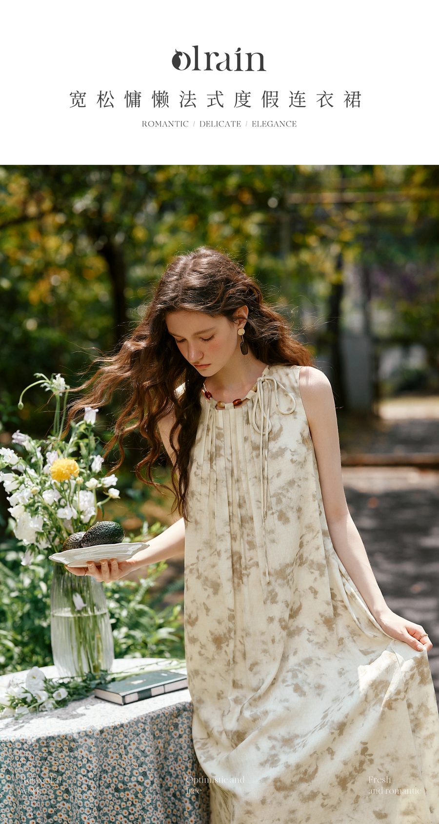 OLrain欧芮儿宽松慵懒法式度假连衣裙女夏季2025新款舒适背心长裙