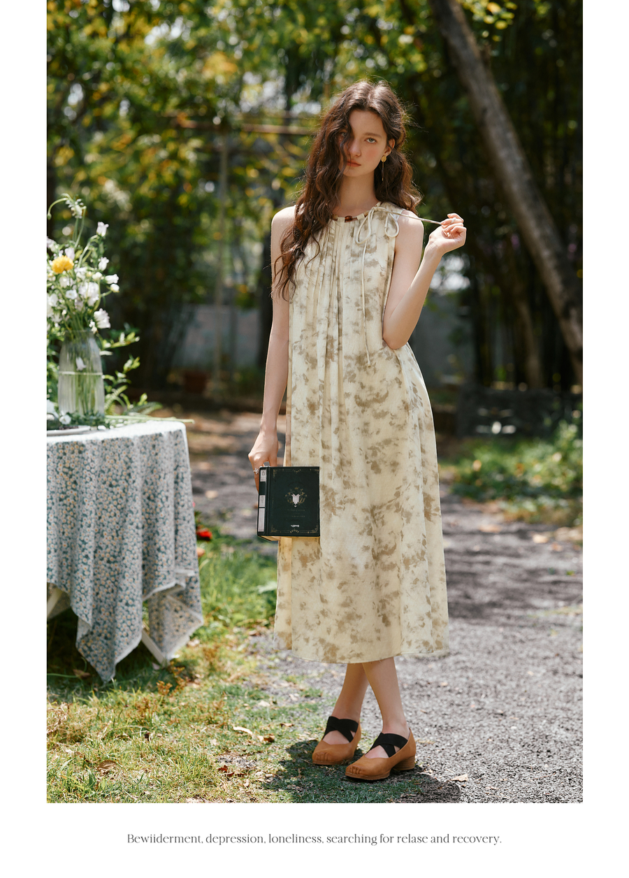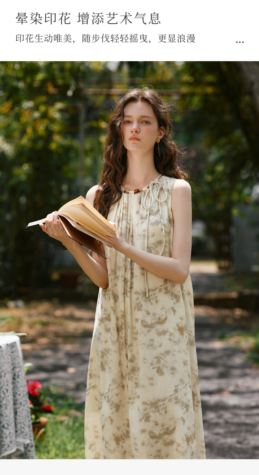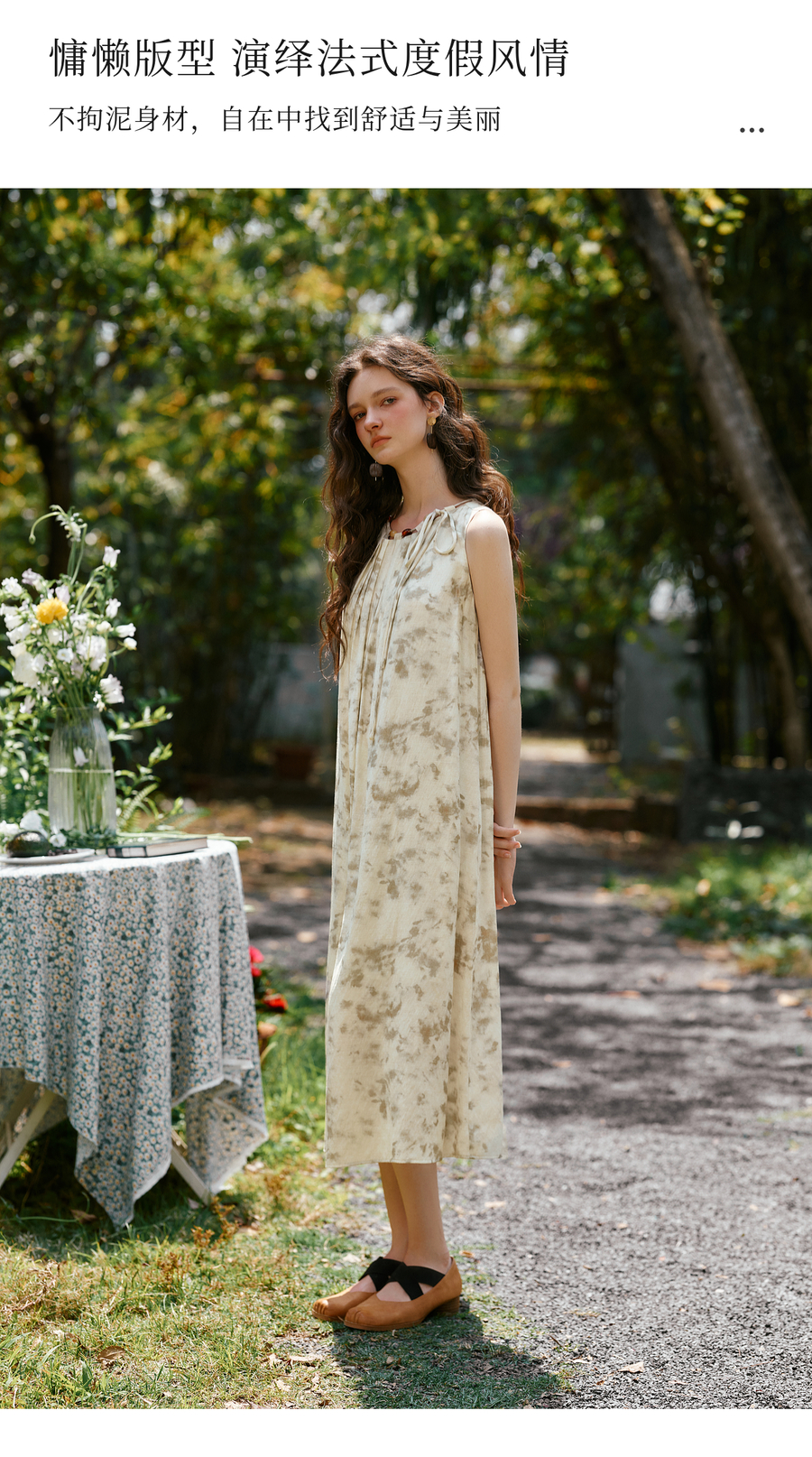 OLrain欧芮儿宽松慵懒法式度假连衣裙女夏季2025新款舒适背心长裙