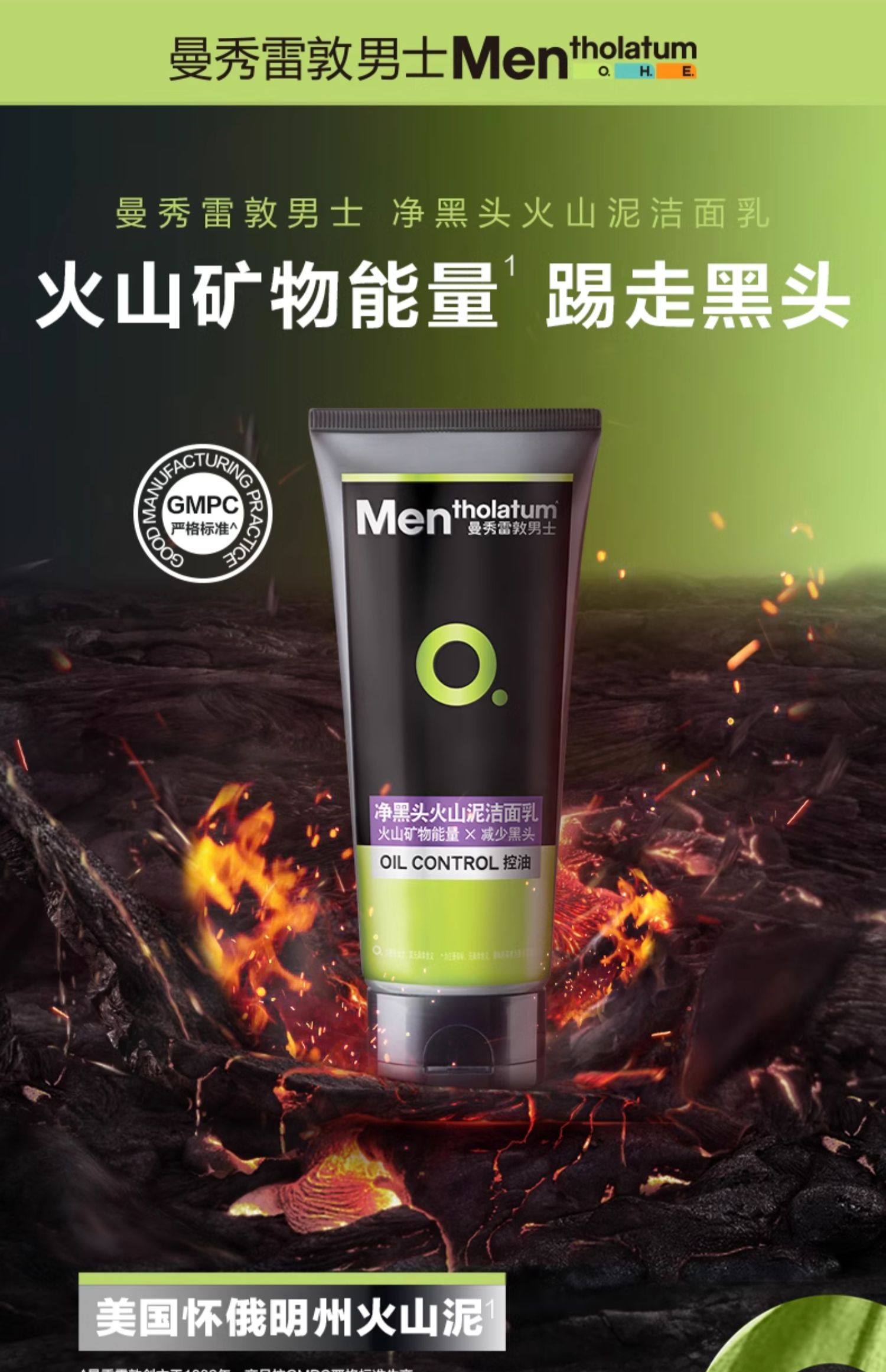 曼秀雷敦男士 净黑头火山泥洁面乳100g