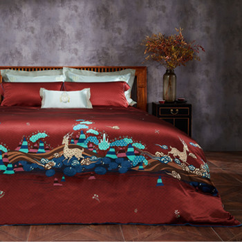 皇锦印花被套三件套-九色鹿HJ11567 |