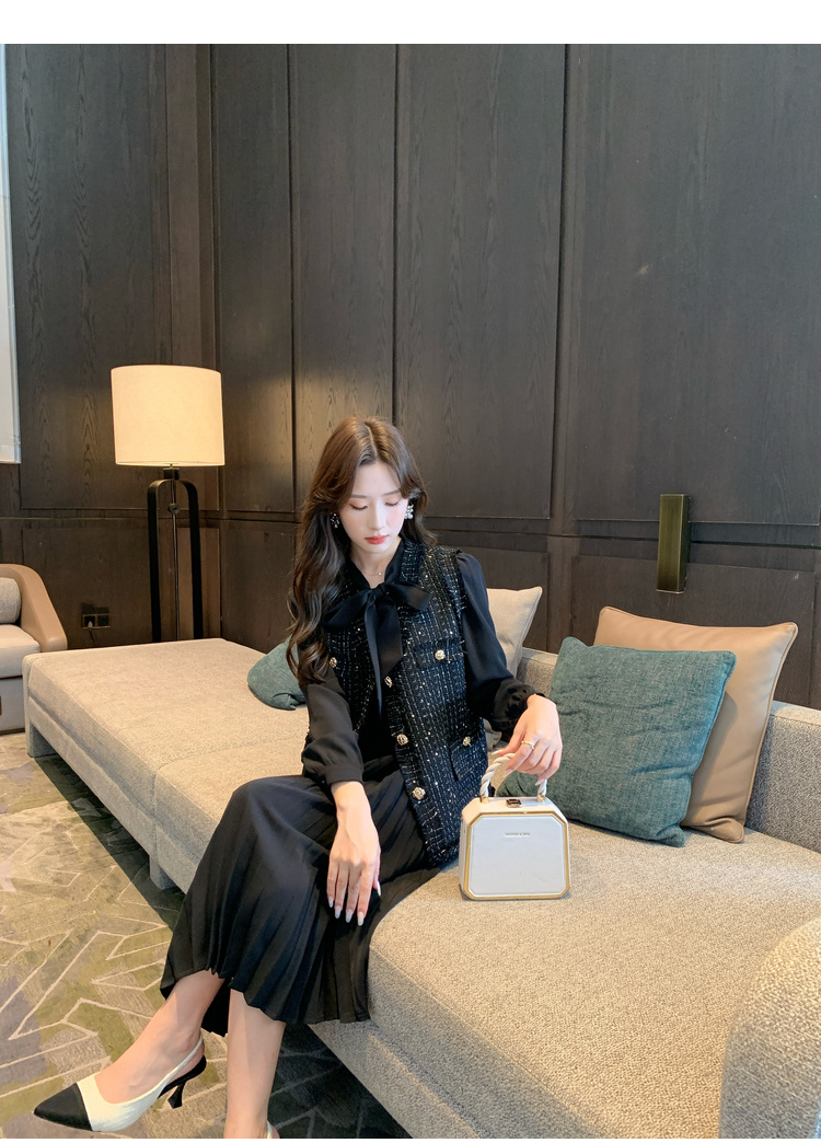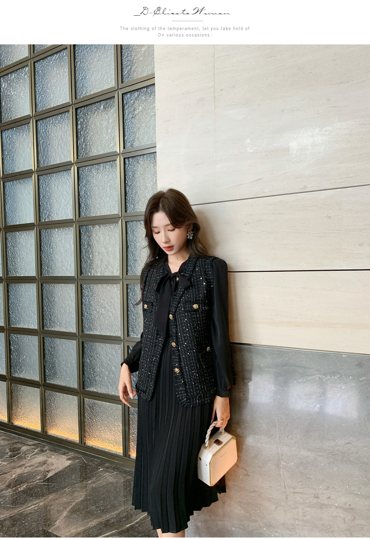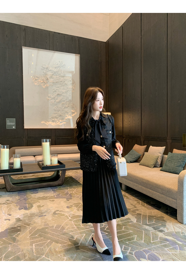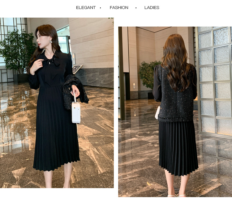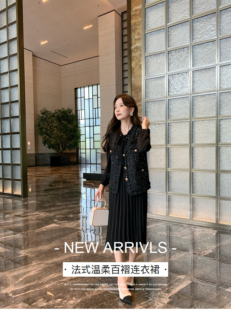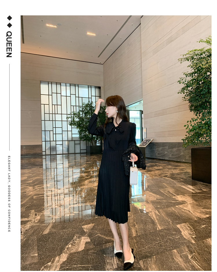 奢姿2024年秋季新款大码女装蝴蝶结绑带裙子胖妹妹温柔百褶连衣裙9943826566