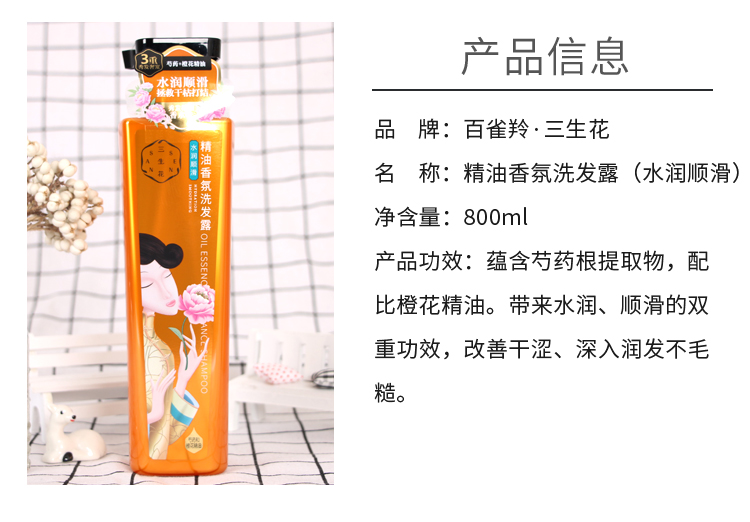 三生花精油香氛洗发露(清柔顺滑)800ml新老包装随机发货